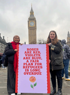 At the start of the year, we held our annual Valentine’s Day action with members from Talgarth to Manchester, Glasgow to Bristol, engaging with their local parliamentarians, writing letters and delivering giant Valentine’s cards filled with powerful messages of compassion as the Border Security, Asylum and Immigration Bill was announced. In February, the government changed the rules to make it almost impossible for many refugees to ever become UK citizens. Working with cross-party MPs and Peers, we pushed back against this cruel policy and led an amendment in the Border Security, Asylum and Immigration Bill. To ensure MPs heard our opposition loud and clear, we wrote to them en masse.Â