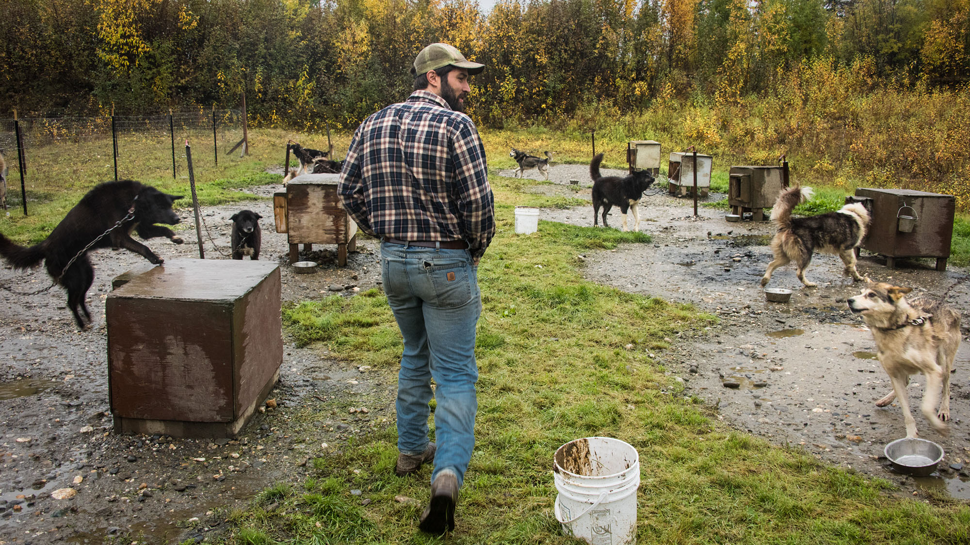 Daniel Skarzynski splashed through puddles as he checked on his dog team, the animals circling and restless in the damp. A rumble of diesel engines carried over from Coldfoot Camp, a way station on the Dalton Highway halfway between Prudhoe Bay and Fairbanks, where truckers fuel up as they haul supplies to the oil field.