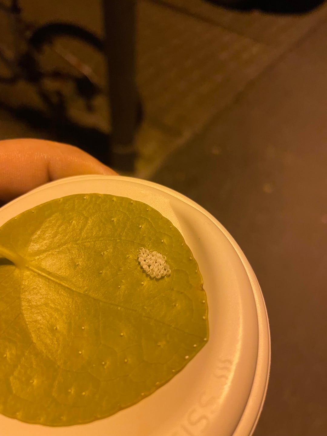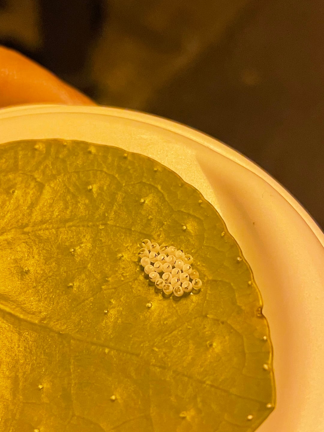 Sind leere Hüllen von Wanzeneiern. Kann man sogar auf die beiden Arten Marmorierte Baumwanze und Grüne Stinkwanze eingrenzen.