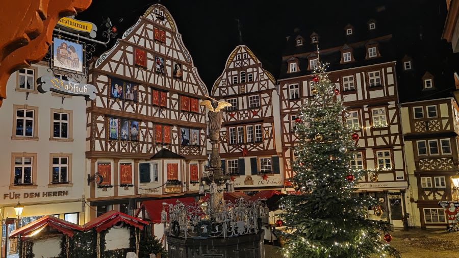 A shame, but we made the most of our surroundings by going for an 11pm walk. And, by God, I’m glad the market was closed, as we got an entire Christmas nativity scene to ourselves. No bustling streets, no Mariah Carey. Just genial company, a giant Christmas tree, and Germany’s timber-framed Fachwerk buildings, something straight out of a Disney fairytale.