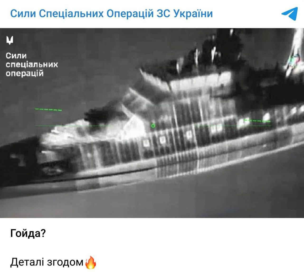 Special Operations Forces of Ukraine is hinting at some goida (bavovna) and promising the details soon… by Igor0976 Tags:Ukraine 22 comments This should be interesting Any idea what we’re supposed to be looking at here? Гойда — literally translates like “Let’s go”. Also yes, there’s gonna be a lot of this in next couple days, enjoy. Orole! They are hitting cartel boats near Venezuela 😉 It appears to be a ship from what I can make out. I don’t think we will be disappointed. hopefully a drone hit a loaded missile on this ship # goida (bavovna) Doesn’t really explain much… but i did read what it means, just find it funny that you thought that bavovna would make it clearer 🙂 Going after oligarch’s yachts, maybe sub-scribe. ^^ I hope they hit the ammo deck and blew it into smithereens I’m going to need a lot more popcorn. This should be a great show!!! Looks like an oligarch’s luxury yacht rather than a naval vessel or shadow fleet tanker. Another Russian ship getting promoted to submarine? The hits just keep on coming Always Goydaa! for kinetic sanctions Is this a reference to Okhlobystin? ([This guy](https://share.google/8qOLD1Dd7UIzYjrYa)) And a very merry Christmas to you!! Tis the season of cold orcs Any boats enjoyers know this model? Looks like the admiral Makarov – but it can’t be – that allready hit hit 😂 Did not know that they made the hull out of “staves”. Ukrainian special forces generally produce good results Comments are closed.