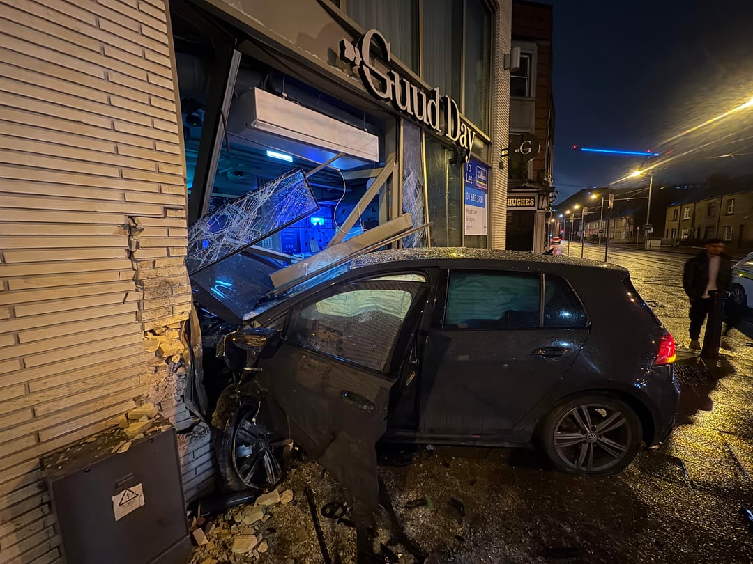 1. You would really have to try hard to crash there the roads veer off to go up Greek St or around Chancery Place, they must have been bombing it up the Luas tracks. Hope nobody was injured. I walk my dog past there every morning and night.