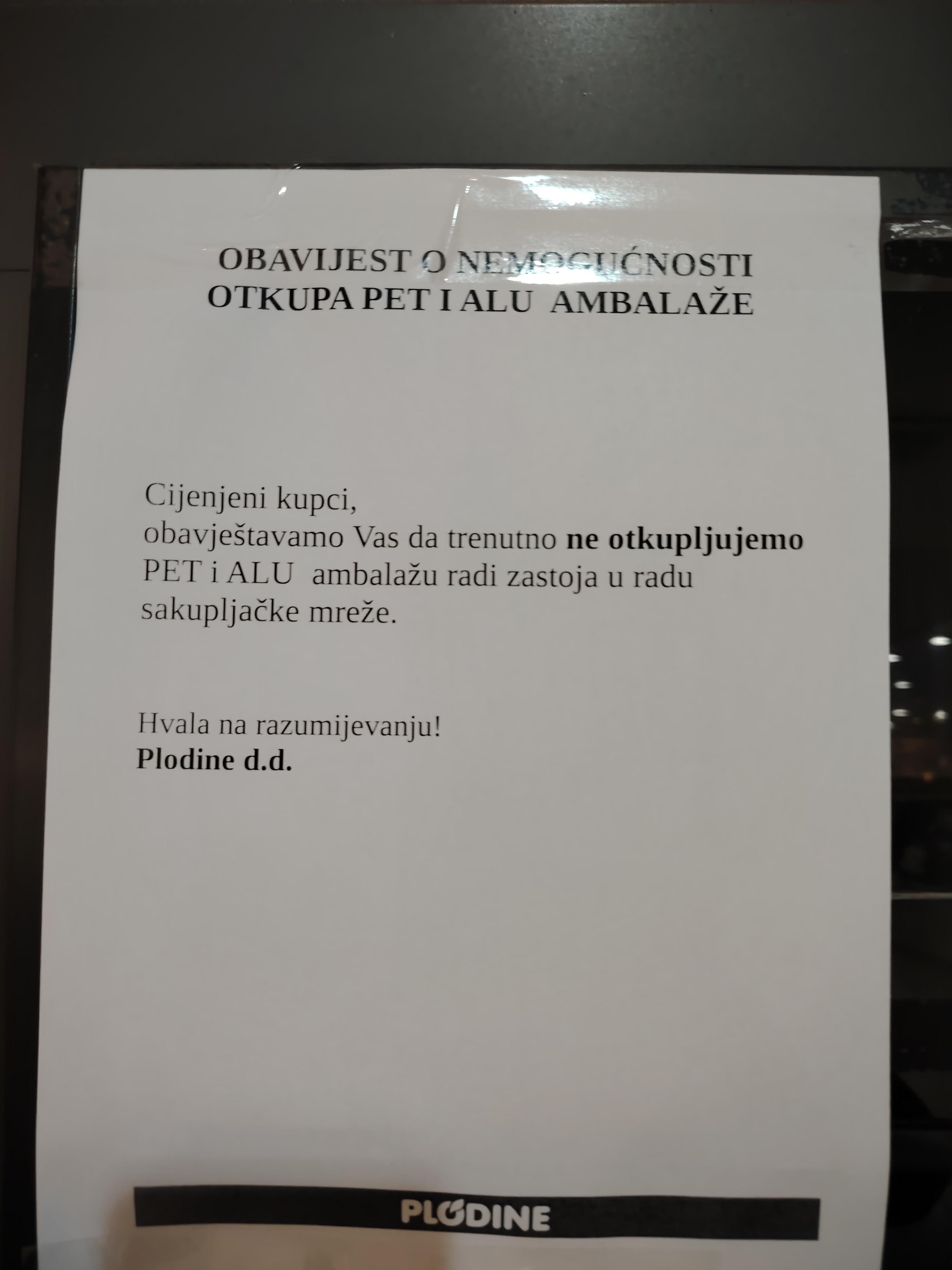 5. Kad sam ja pitao prije par tjedana, onda su mi se smijali. U zadnje vrijeme vidim da češće ne primaju nego primaju. A nije mi toliko do tih 10 centi koliko mi se neće plaćati extra da mi to smeće odvezu. Razmišljam da jednostavno ostavim boce ispred stroja drugi put…