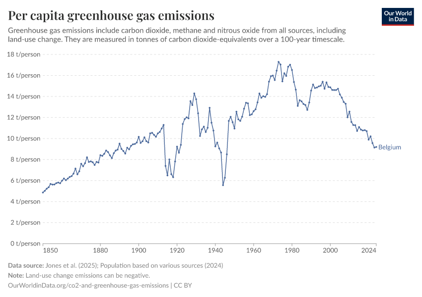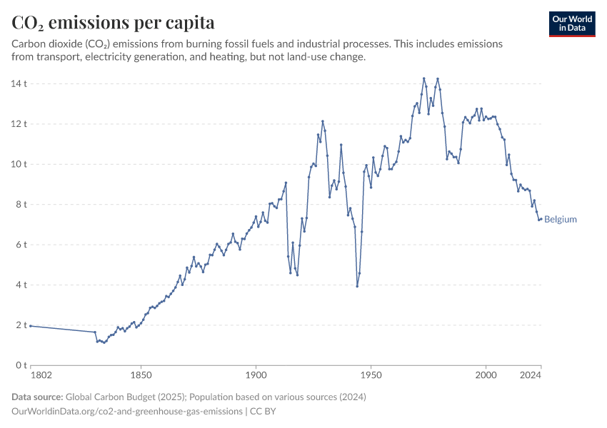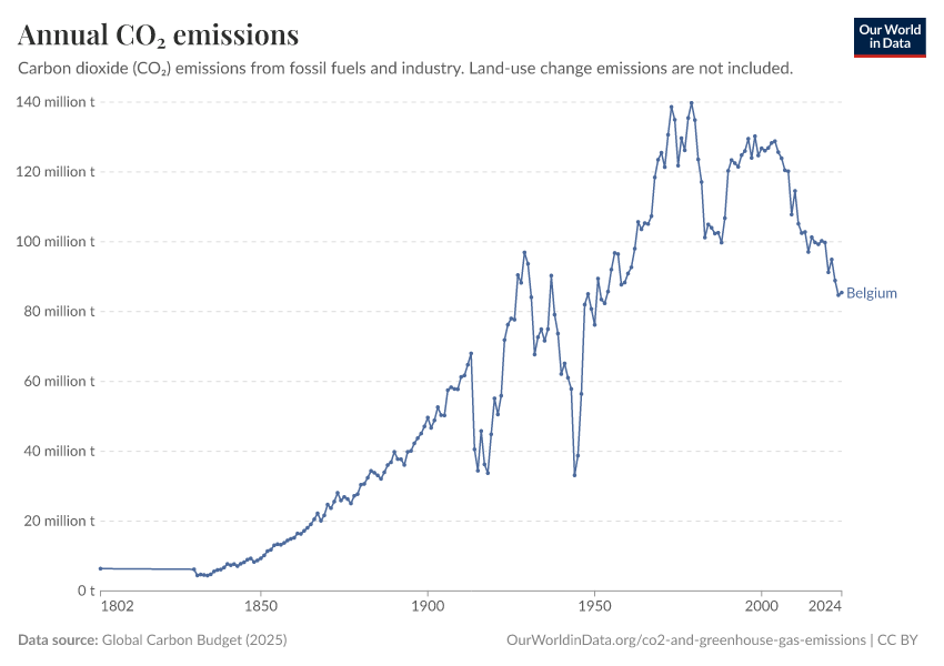 Hannah Ritchie (2025) – “CO₂ and Greenhouse Gas Emissions” Published online at OurWorldinData.org. Retrieved from: ‘https://ourworldindata.org/profile/co2/belgium’ [Online Resource]