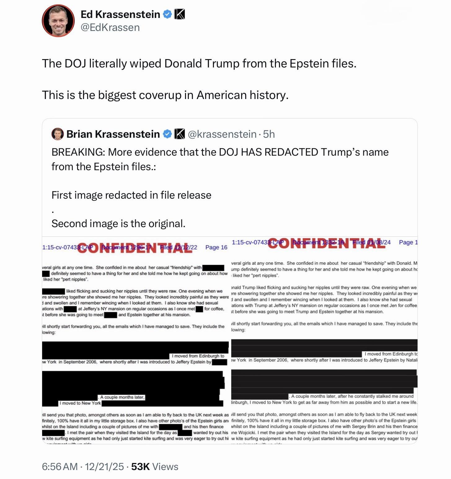 This kind of thing is going to be the un-doing of this cover-up. Each mis-match/”leak” in redaction is incriminating and it won’t take long ’til a “pattern of behavior” on the part of the censors emerges, and assuming they’re of similar character to this and the others we’ve seen so far, outrage will mount.