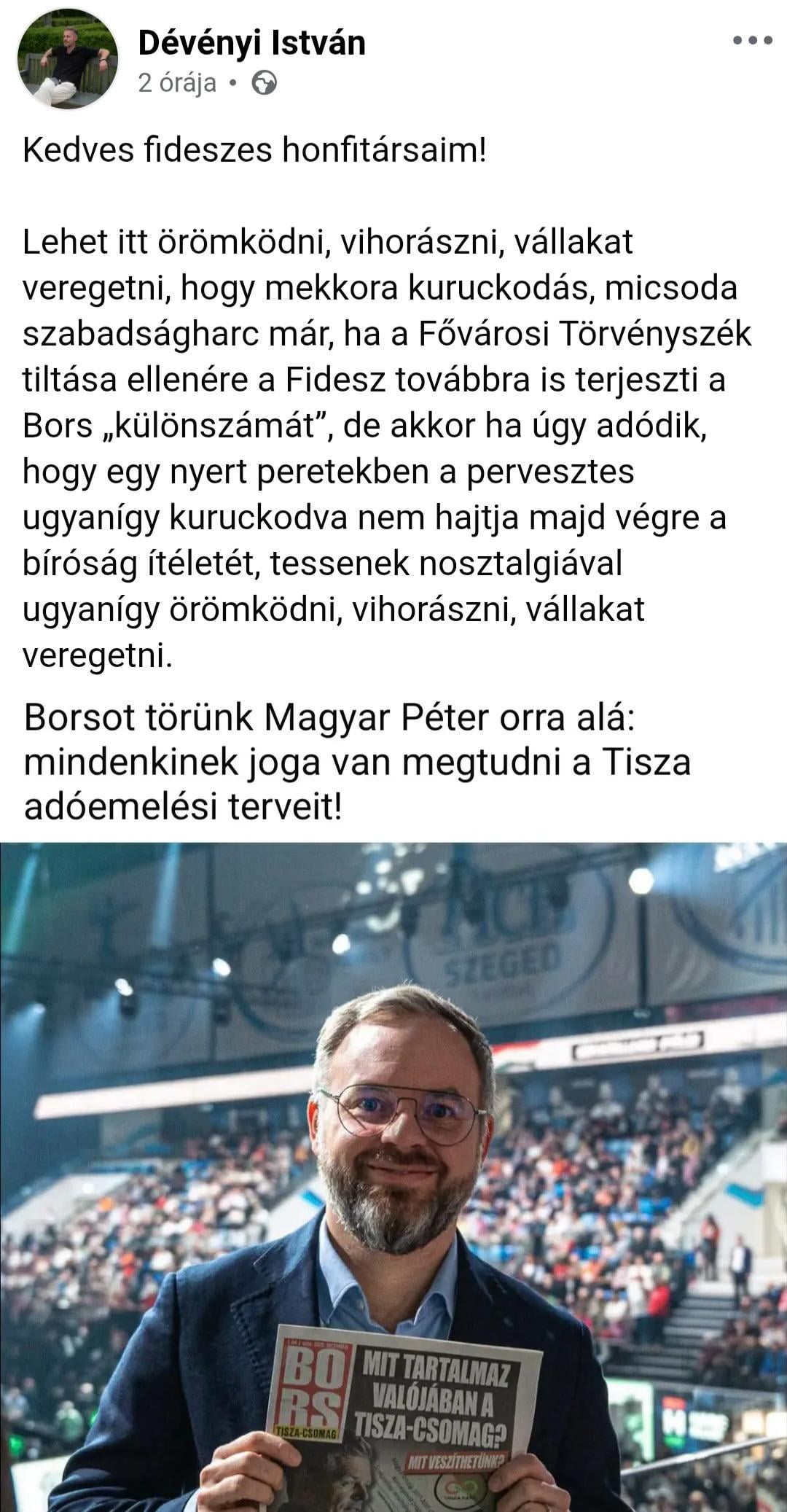 Igaz, hogy mi fogjuk fizetni a bírságot is, amit esetleg kap a Bors, de itt legalább jó helyre megy majd. A Tisza pedig remélem, hogy egy még erősebb kampányt fog tudni belőle felhúzni majd abból, amit kap.