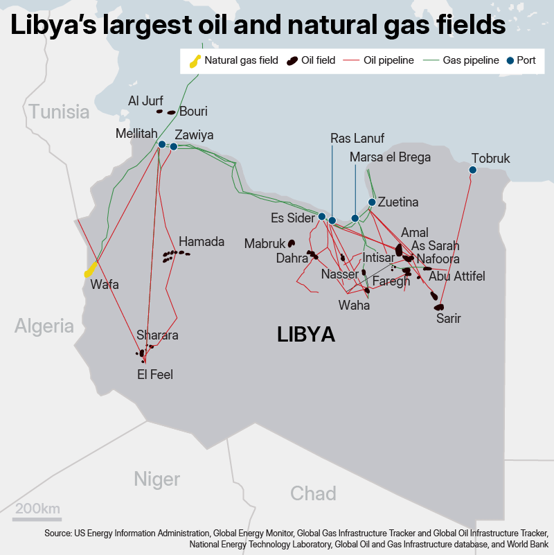 Last year, Libya’s National Oil Corporation declared force majeure at Al Sharara, its biggest oilfield, in the Murzuq Desert, in the west of the country, taking it offline temporarily amid unrest.