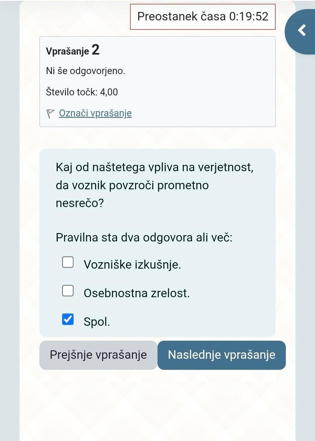 osebnostna zrelost je torej tisto, kar odločilno vpliva verjetnost povzročitve prometne nesreče