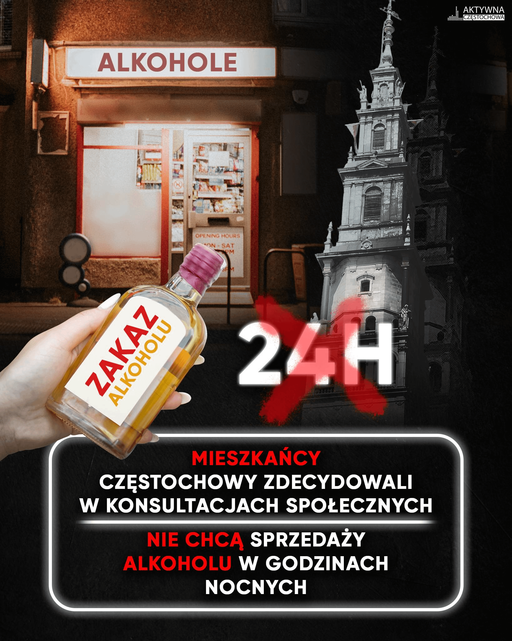 Kolejne miasto z nocną prohibicją w sklepach – 71% mieszkańców Częstochowy poparło wprowadzenie ograniczenia. Jeśli wszystko pójdzie zgodnie z planem, zmiany wejdą w życie w 2026 roku.