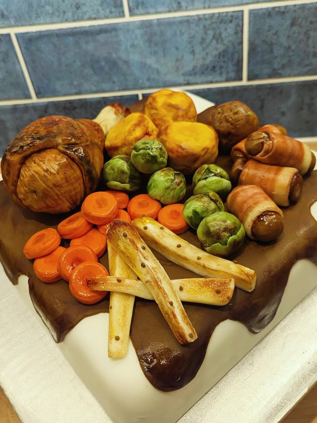 My sister and I always decorate the Christmas cake in a more unconventional manner…this year we settled on making it a roast dinner cake 😅