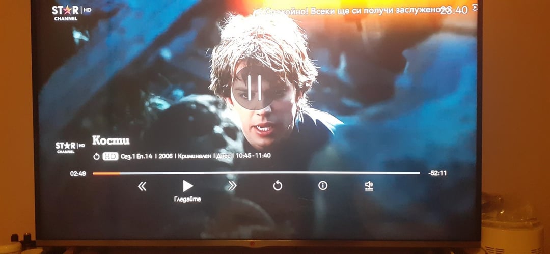 Абе пускат ги по STAR в зависимост от това какво дават. Ако е комедия – горе в дясно излиза “Усмихни се” . Ако е криминален с разкриване на някакви убийства – излиза “Всеки ще си получи заслуженото”