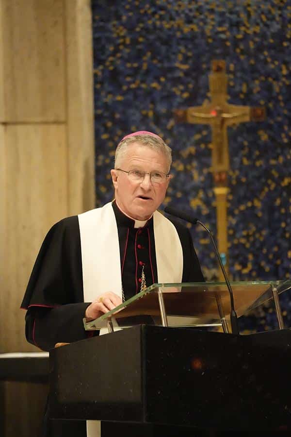 Archbishop Timothy P. Broglio of the U.S. Archdiocese for the Military Services and president of the U.S. Conference of Catholic Bishops, delivers his reflection during the annual prayer service for United Nations diplomats at Holy Family Church in New York City Sept. 8, 2025. The event, hosted by the Vatican’s permanent observer mission to the U.N., took place on the eve of the opening of the 80th session of the U.N. General Assembly. (OSV News photo/Gregory A. Shemitz)