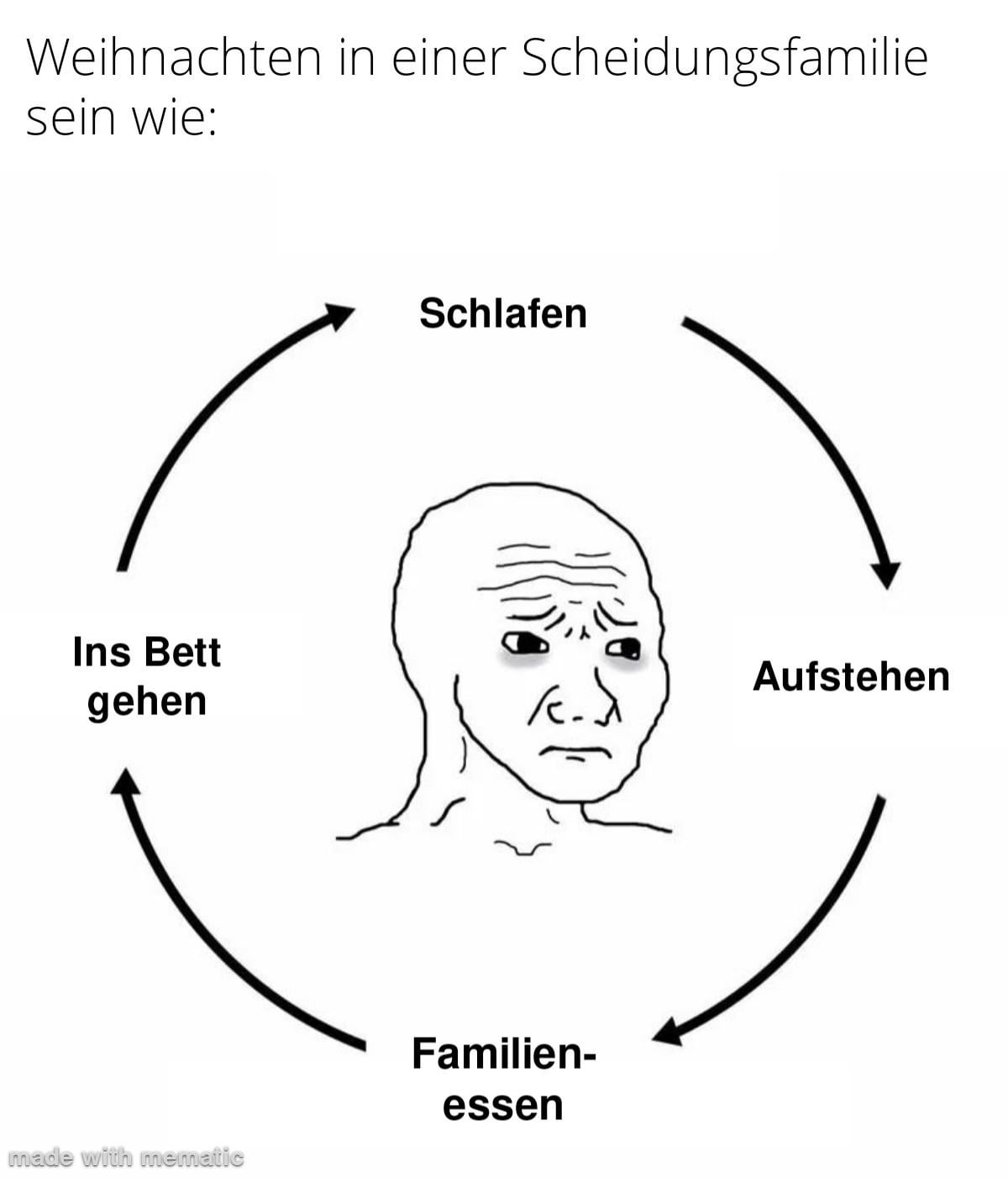 Wenn du das Familien weg nimmst und nur das essen stehen lässt, dann hat man mein Weihnachten, naja trotzdem frohe Weihnachten
