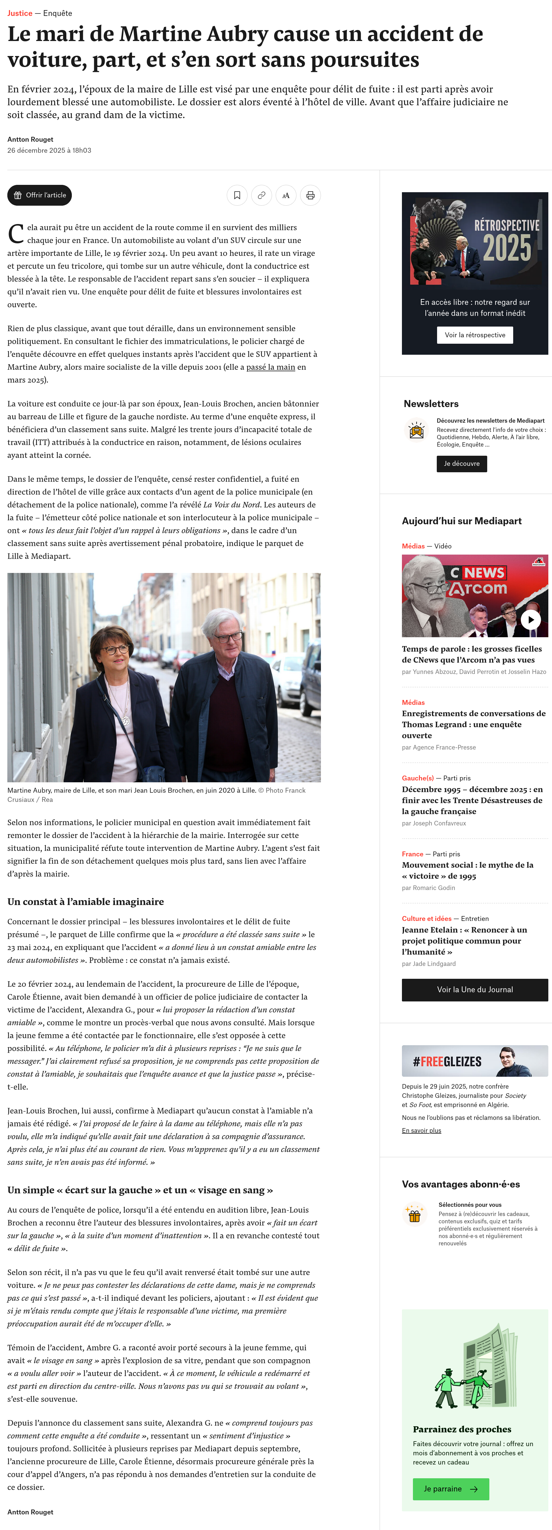 > Sollicitée à plusieurs reprises par Mediapart depuis septembre, l’ancienne procureure de Lille, Carole Étienne, désormais procureure générale près la cour d’appel d’Angers, n’a pas répondu à nos demandes d’entretien sur la conduite de ce dossier.