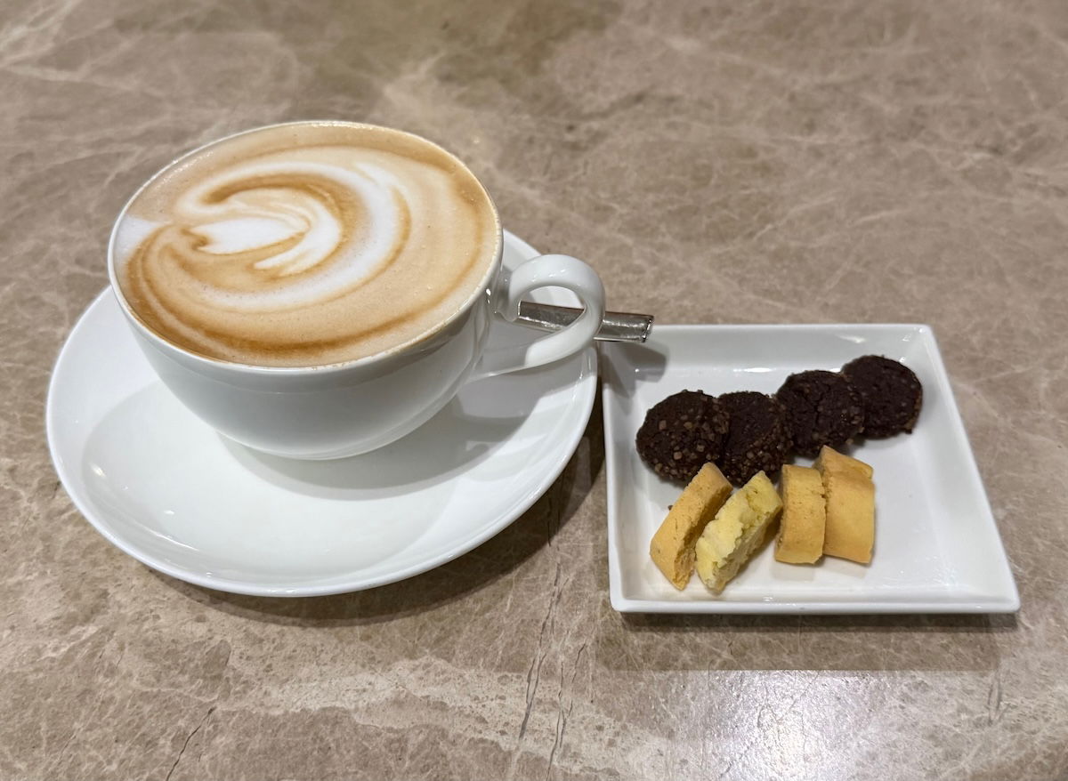 While neither of our rooms were quite ready, they were still ready ahead of check-in time. In the meantime, we were invited to the hotel’s bar for a drink — I had a delicious cappuccino.