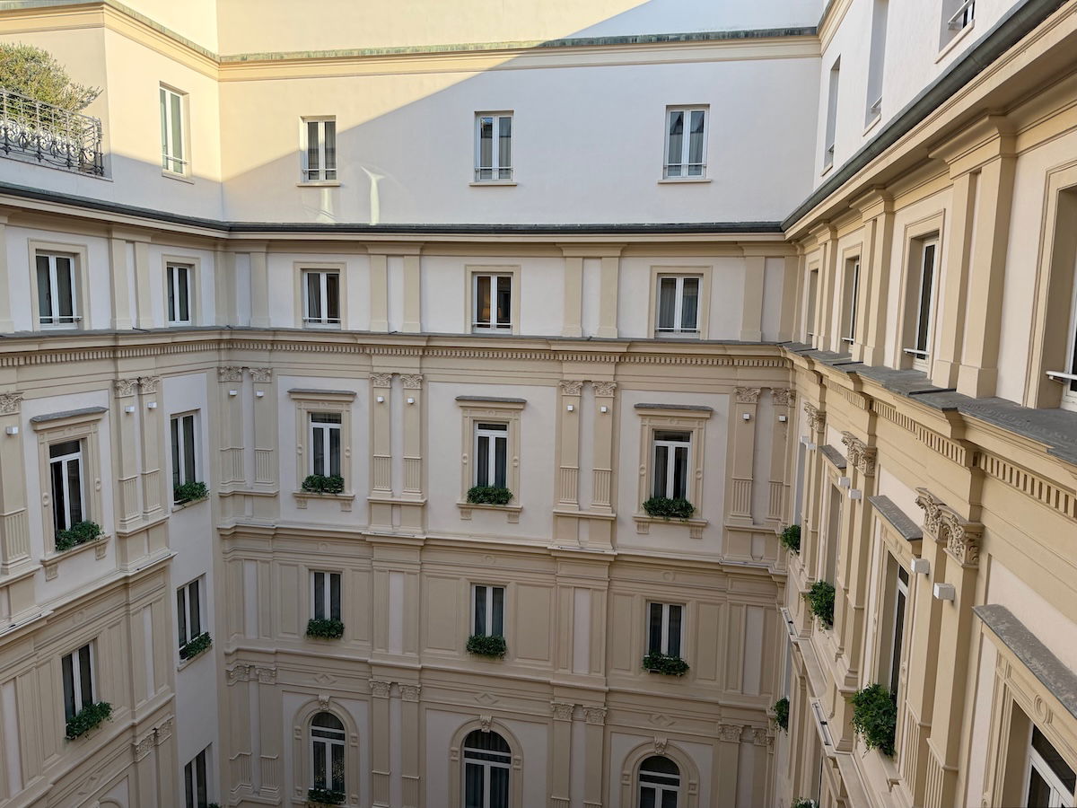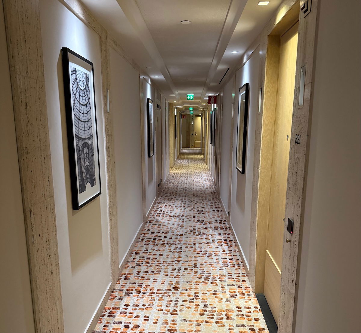 The Park Hyatt Milan is in a rectangular shape, so each floor has four hallways that connect. This means some rooms face the courtyard, while others face the street.