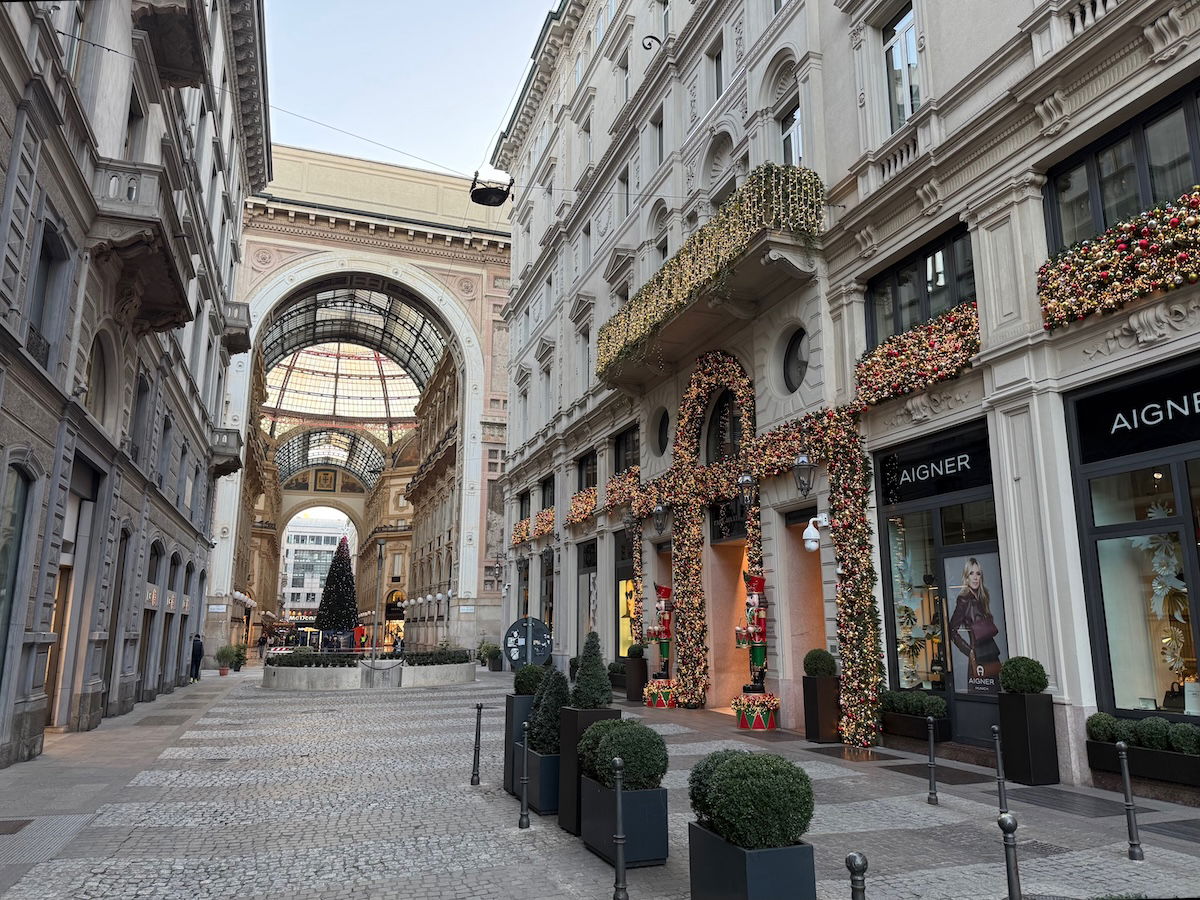 In the below picture, what you see to the right with all of the Christmas decorations is the Park Hyatt, while straight ahead is the famous galleria.