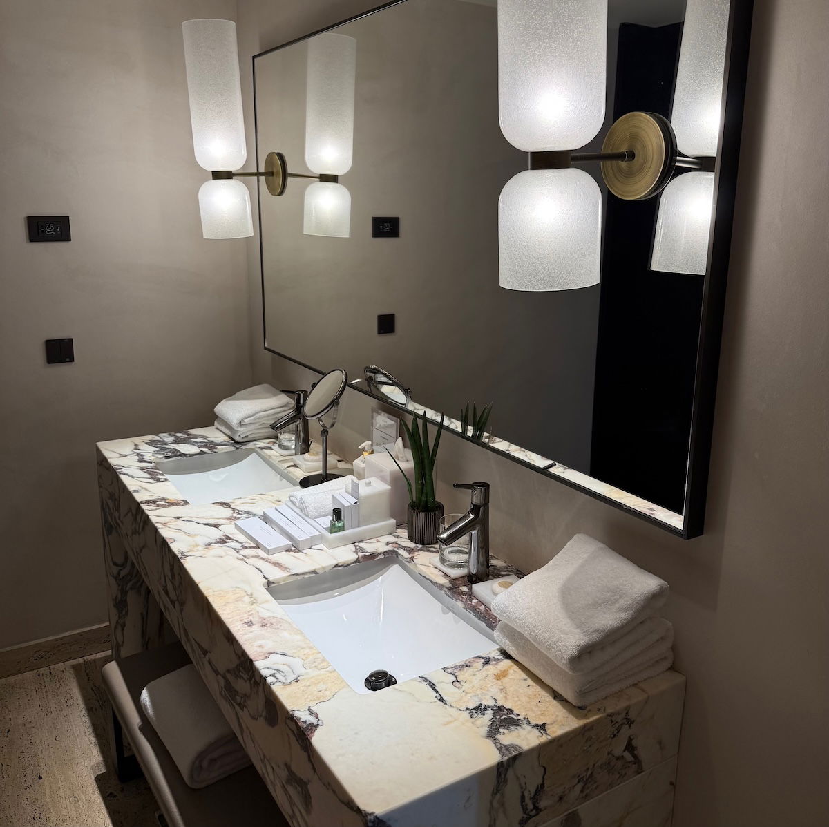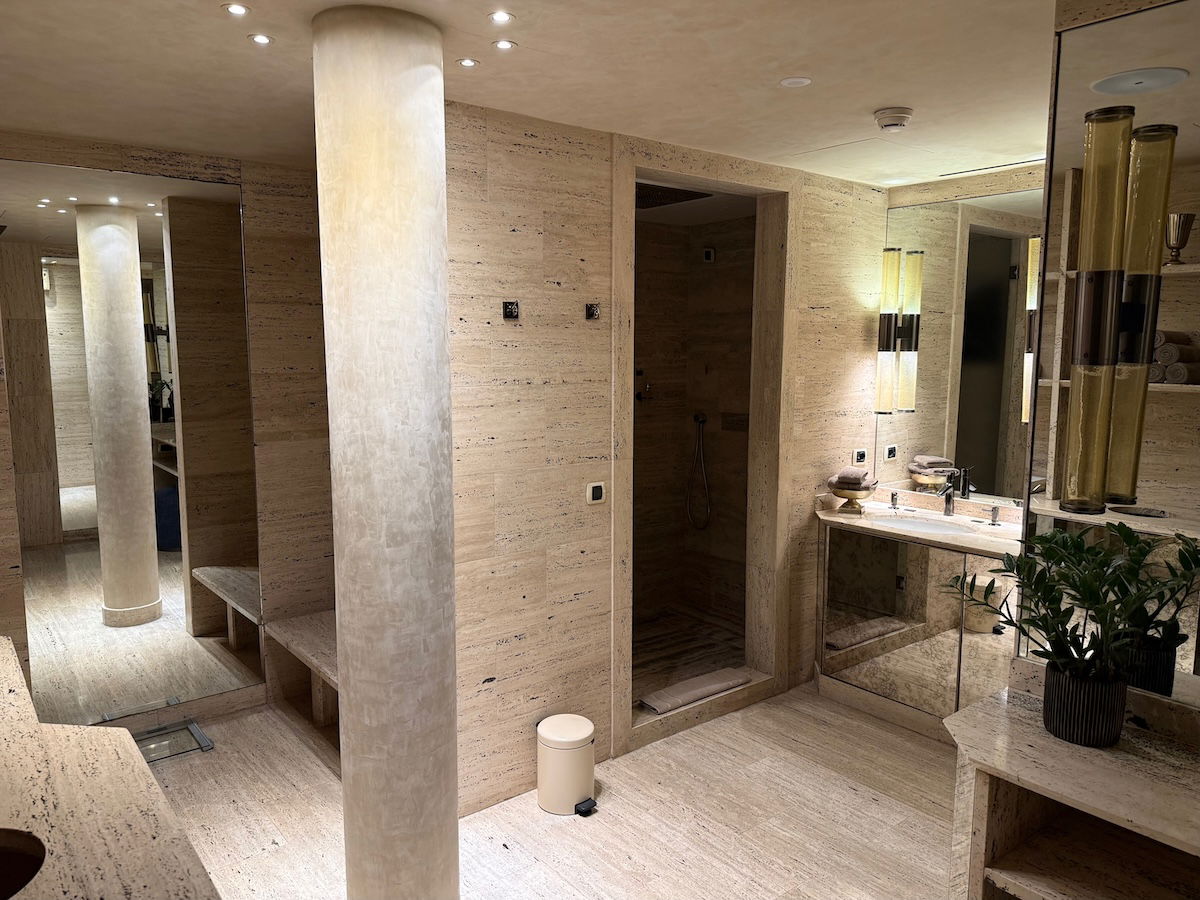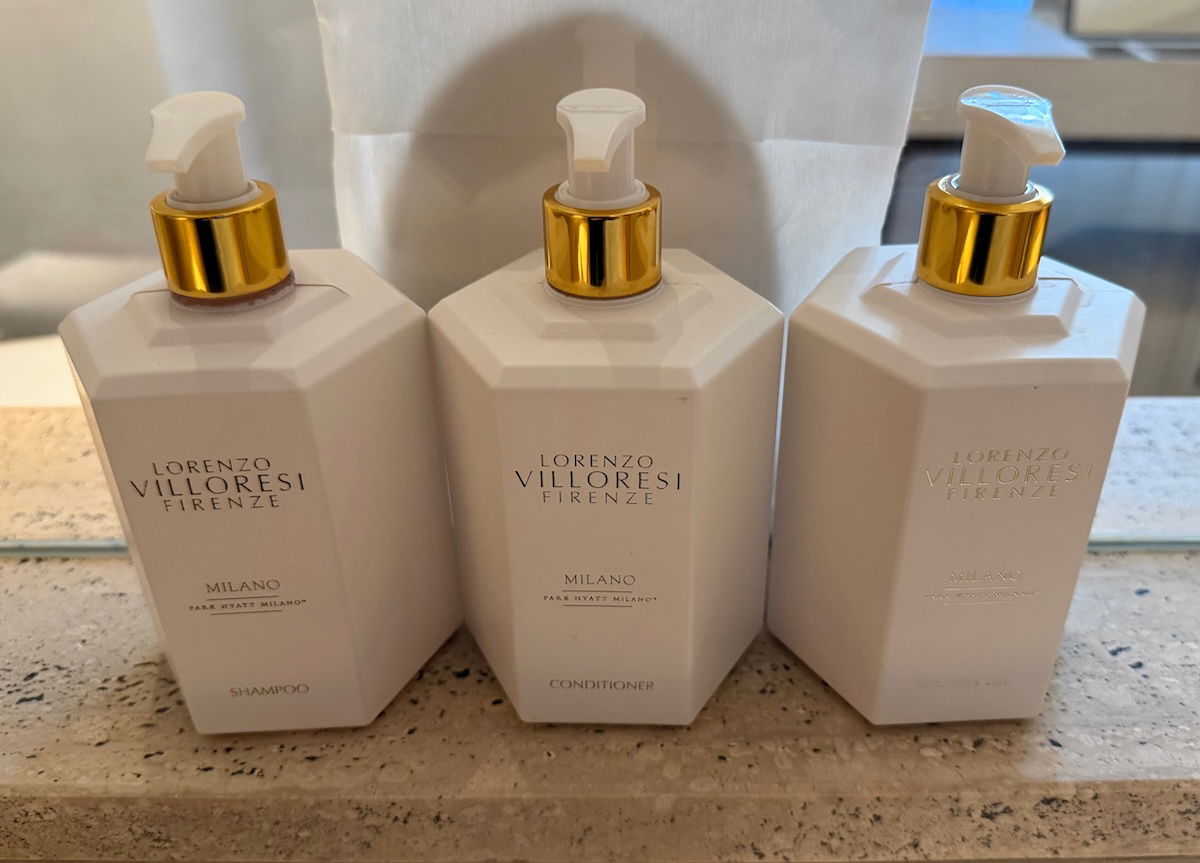 Water pressure in the shower was excellent, and toiletries were from Lorenzo Villoresi Firenze, in reusable bottles.