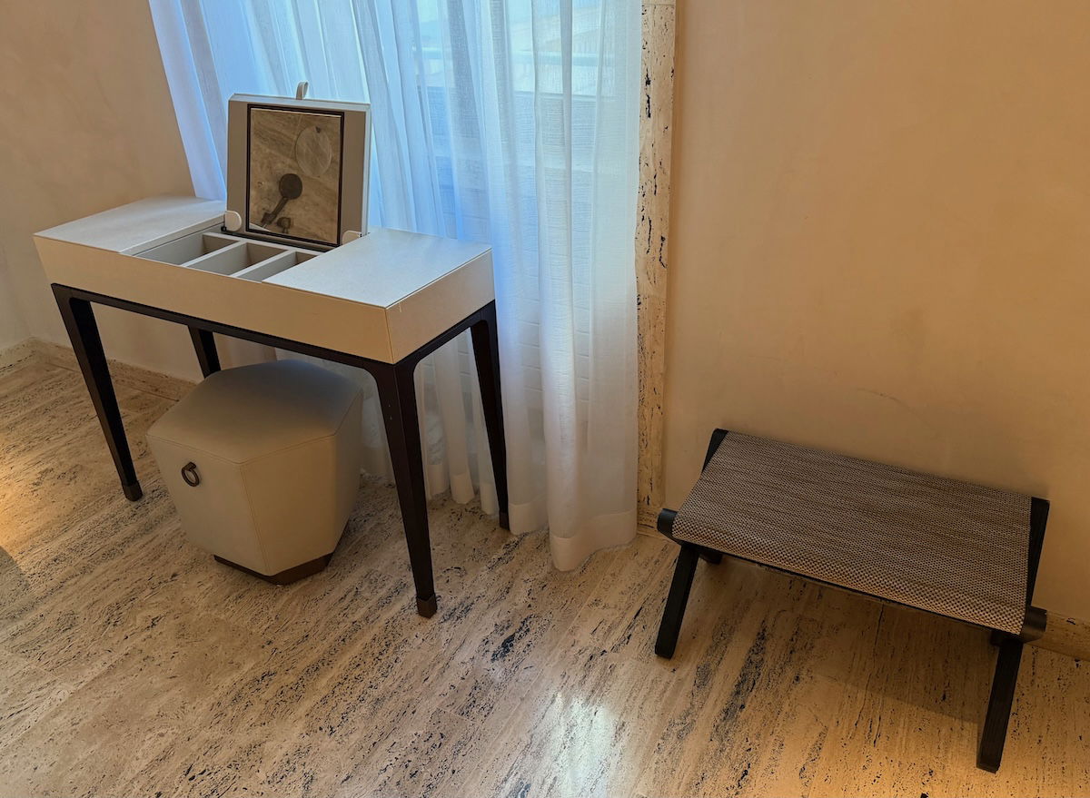 I know there’s a general “war on desks” as hotel rooms are redesigned, and that was a casualty during this property’s redesign; it’s bizarre, because the junior suite was huge, so there would’ve been plenty of room for a desk, but they opted not to offer that