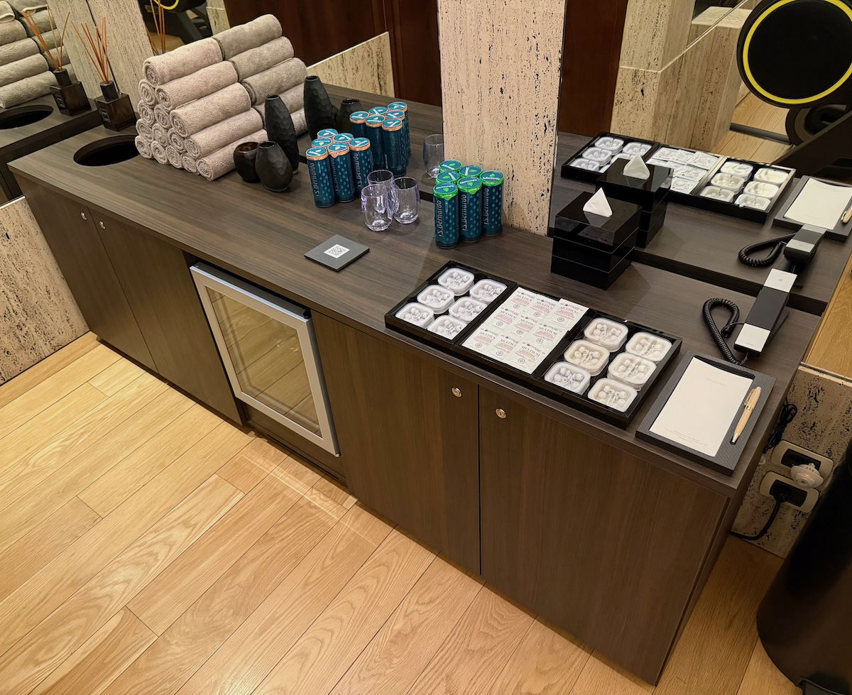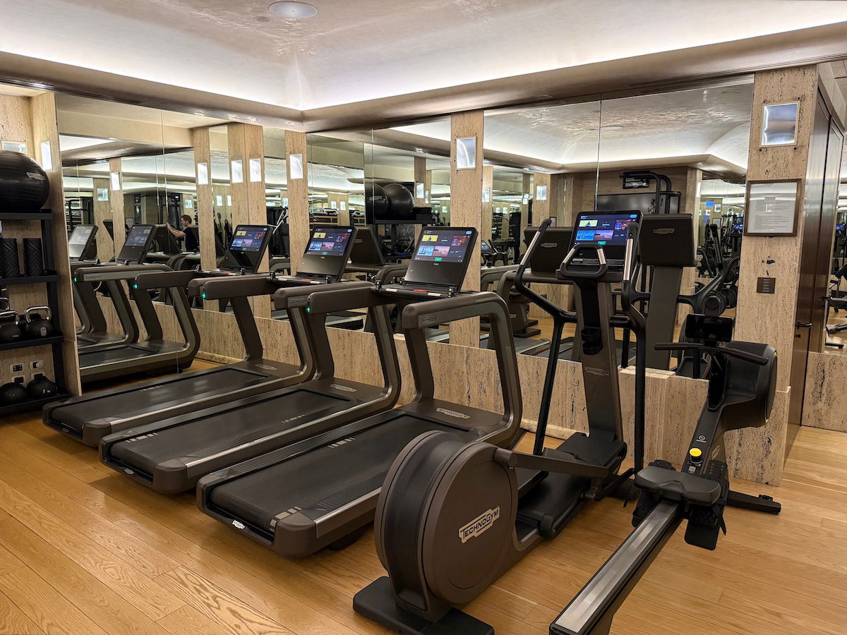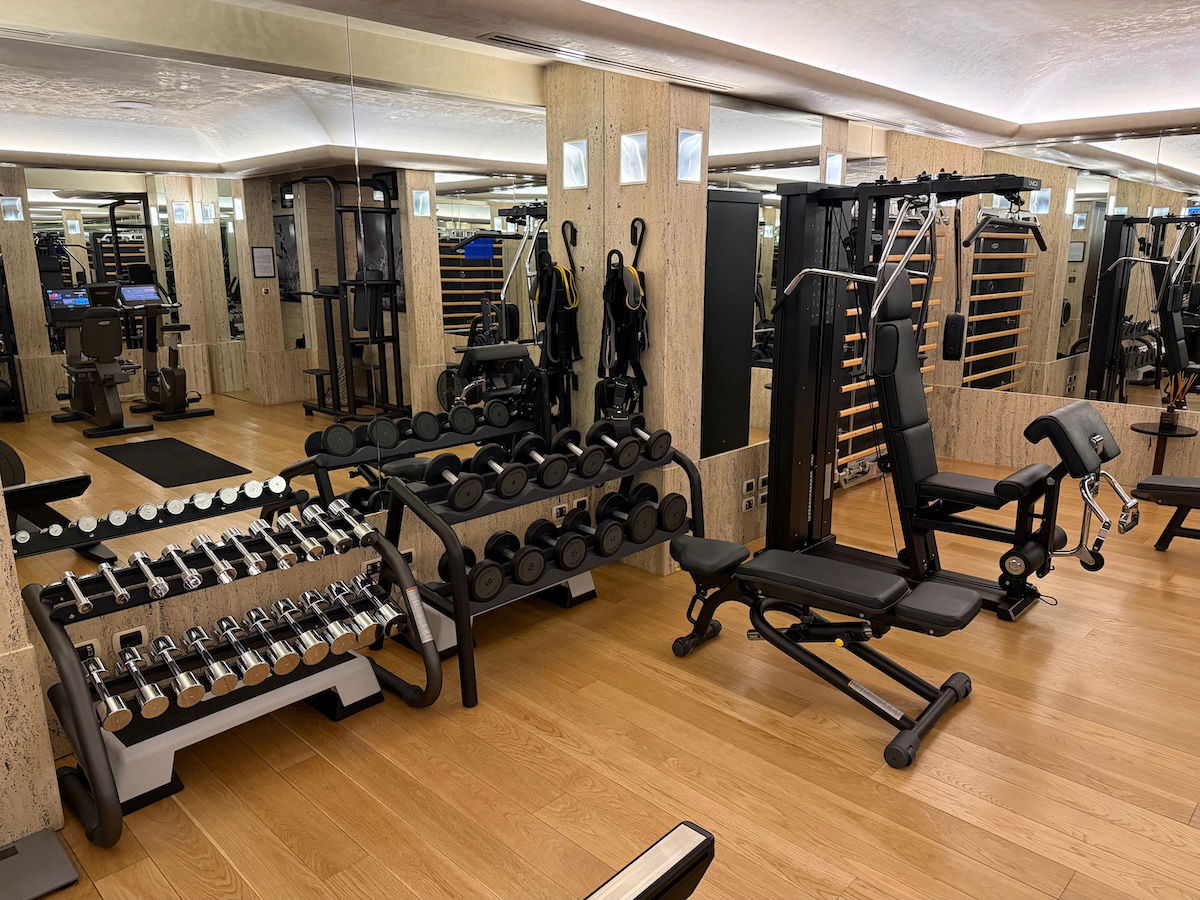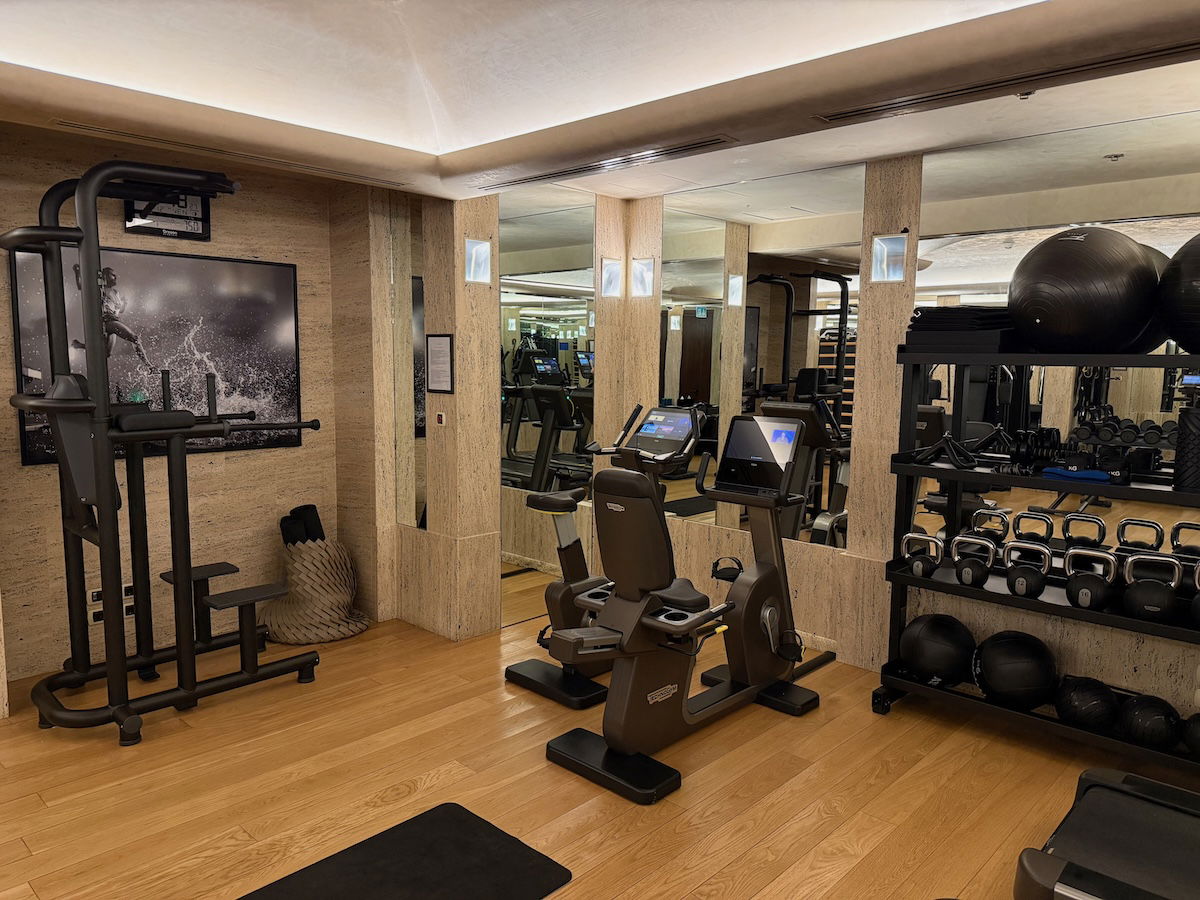 The Park Hyatt Milan has a beautiful spa and gym that takes up the entire basement level. The gym can be accessed by guests 24/7, and is small but functional, with a decent selection of cardio and weight equipment. My only complaint is that I wish they had free weights heavier than 14kg, since that’s really not very heavy.