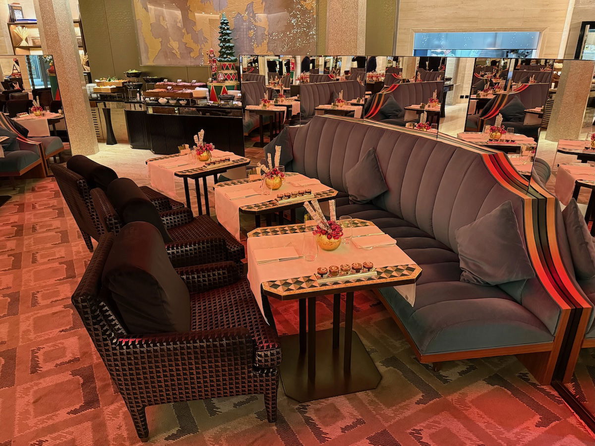 It serves breakfast daily from 7AM until 11AM, and has an all-day dining menu from 12PM until 11PM, and you can find the menus here. You can also just come here for a drink, and this place really is popular with hotel guests and locals alike. How beautiful are these Christmas decorations?!