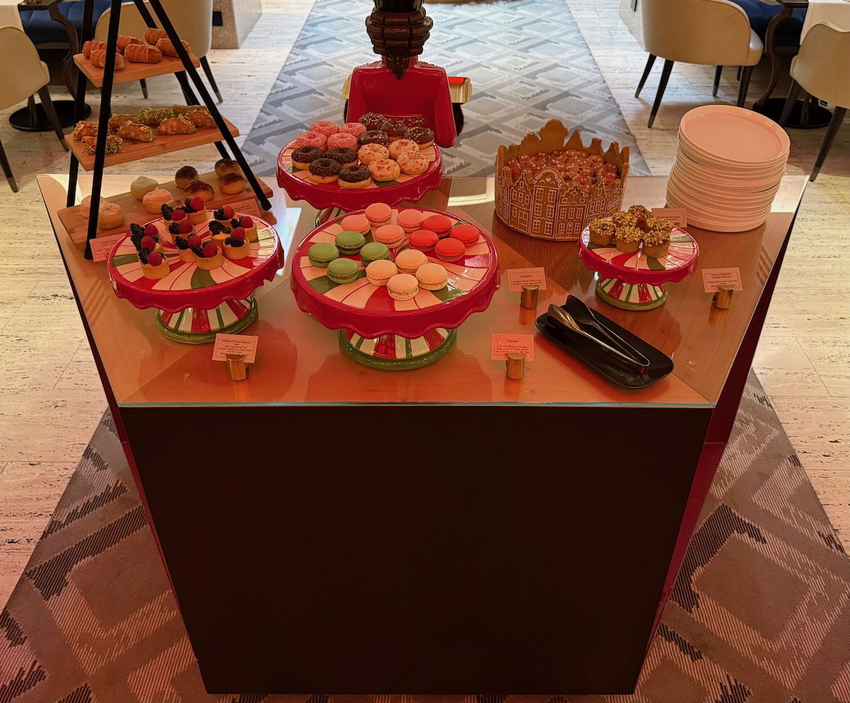 The breakfast buffet had a delicious selection of fresh fruit, cold cuts, cheese, fresh bakery items, cake, yogurt, cereal, some Middle Eastern dishes, and more. Yum, yum, yum.