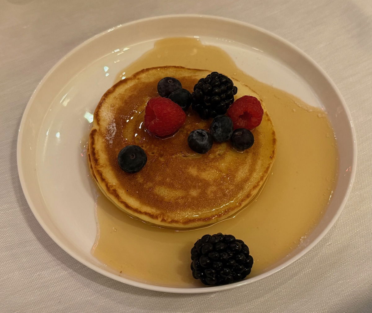 The buffet could be supplemented by a small a la carte selection, so one morning I had scrambled eggs with avocado, and another morning I had pancakes.