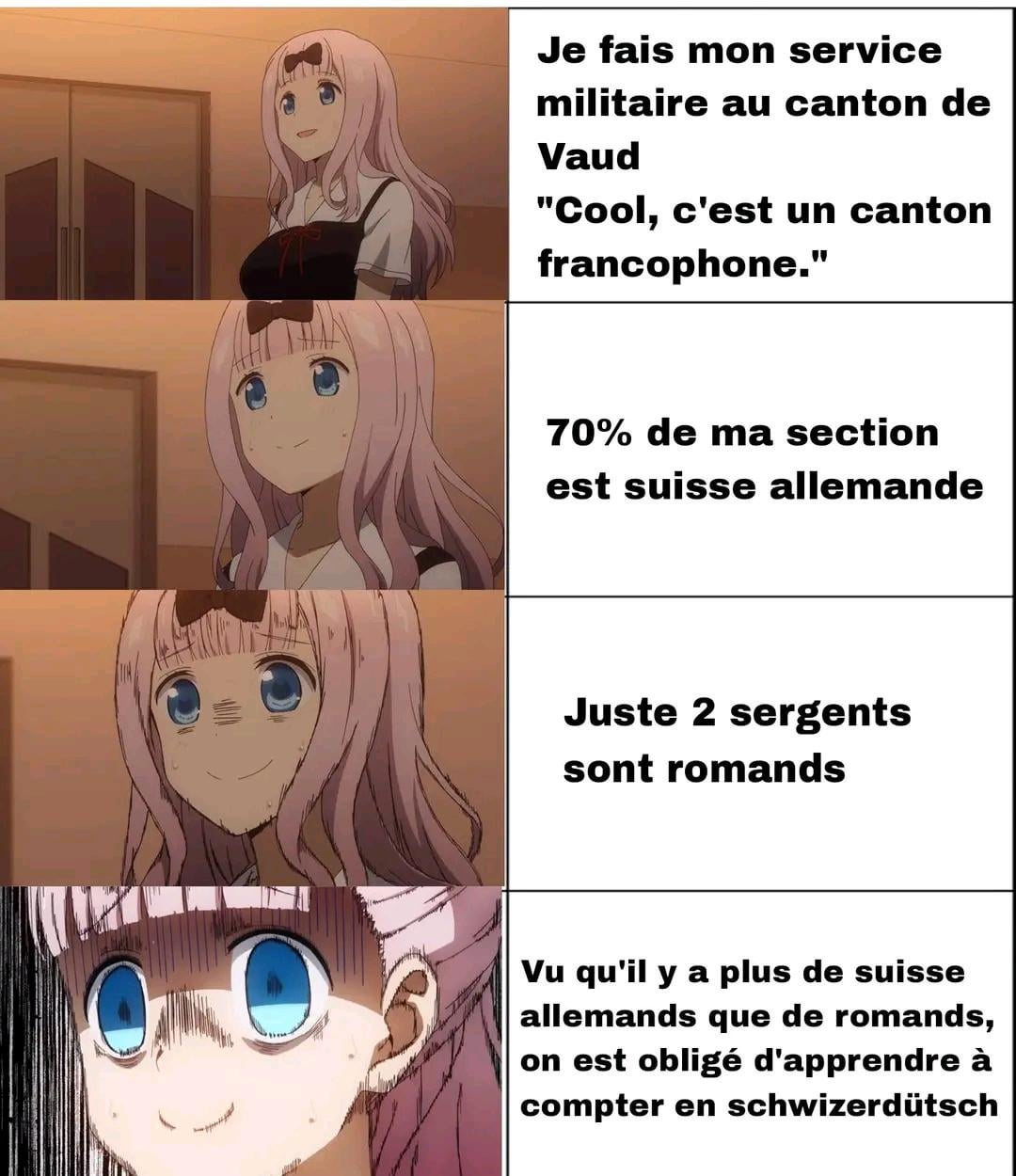 Sie sind ezte im Militär, do goht en andere Wind…..Et pour les romands c’est la meme chose.
