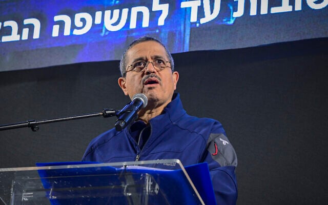 Former police chief Roni Alsheikh speaks during a protest at Habima Square in Tel Aviv, December 27, 2025. (Avshalom Sassoni/Flash90)