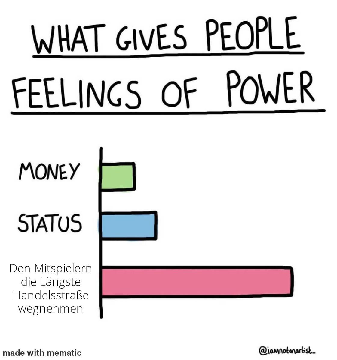 3. Oder der Klassiker: Rohstoffe mit Mitspielern tauschen und dann via Monopol-Entwicklungskarte zurückholen. Erzeugt immer große Freude am Tisch.