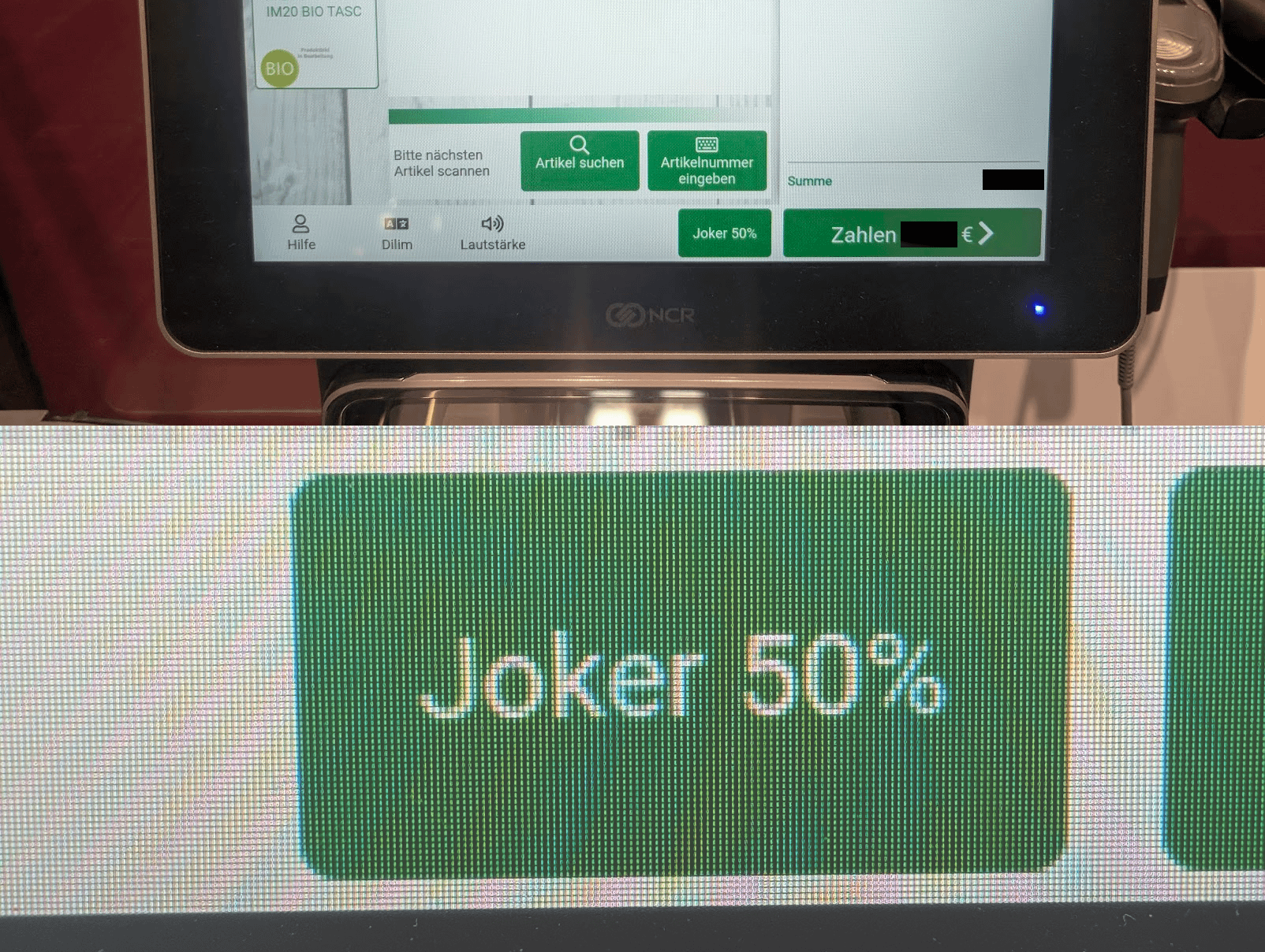 Das ist der 50% Trinkgeld Button für den Kassierer