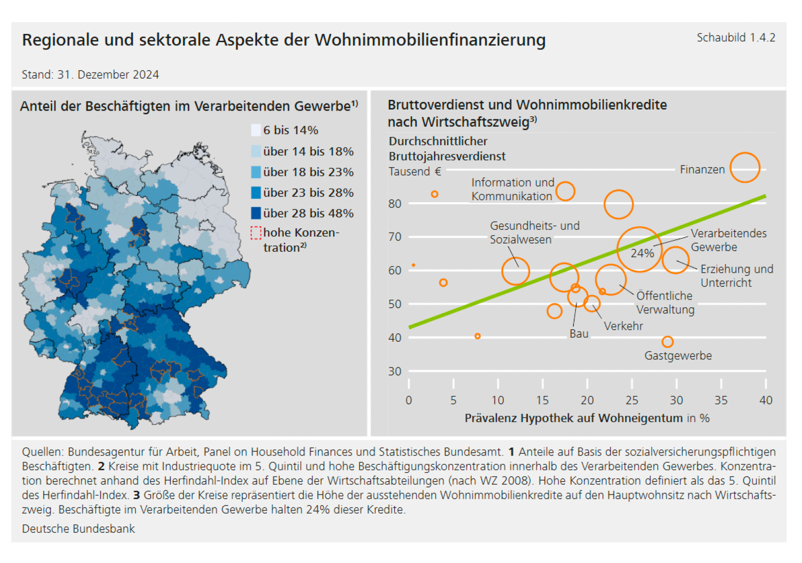 On the right-hand side, the Bundesbank shows the prevalence of mortgage debts across different sectors of the German workforce and the share of mortgages held by each group.