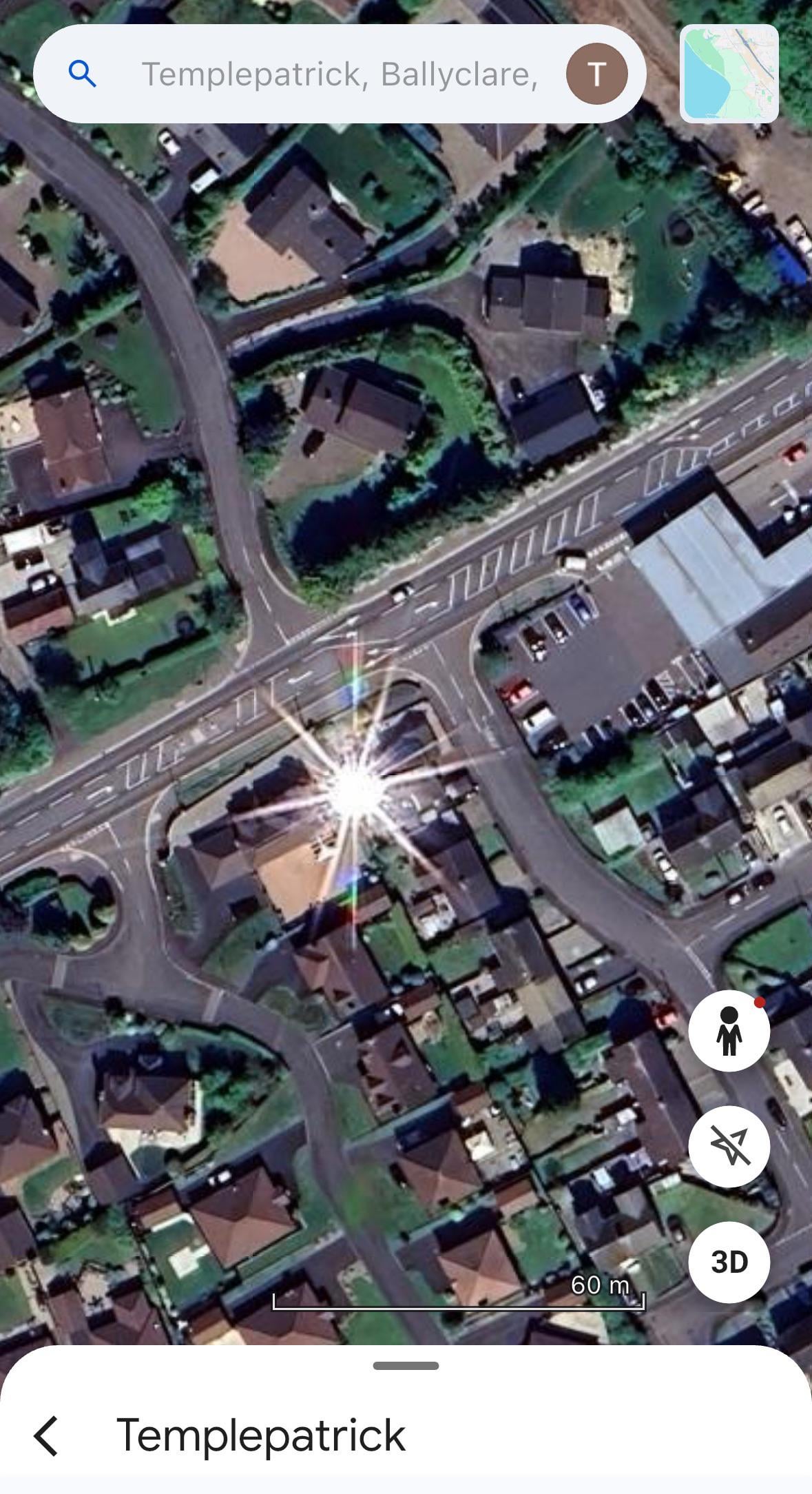 7. The imagery is taken by aircraft on clear sunny days. It’s just been caught at the right point for the sun to reflect off a solar panel or shiny thing on the roof.