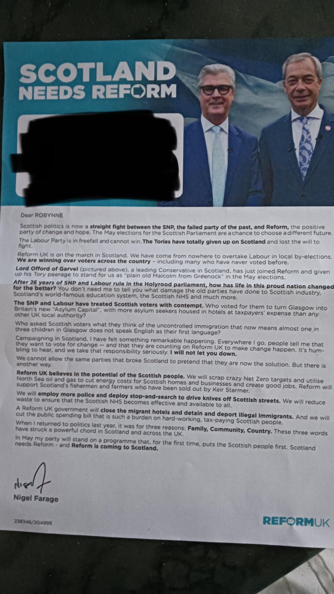 No idea why reform send letters, it’s not like any one who can read would vote for them
