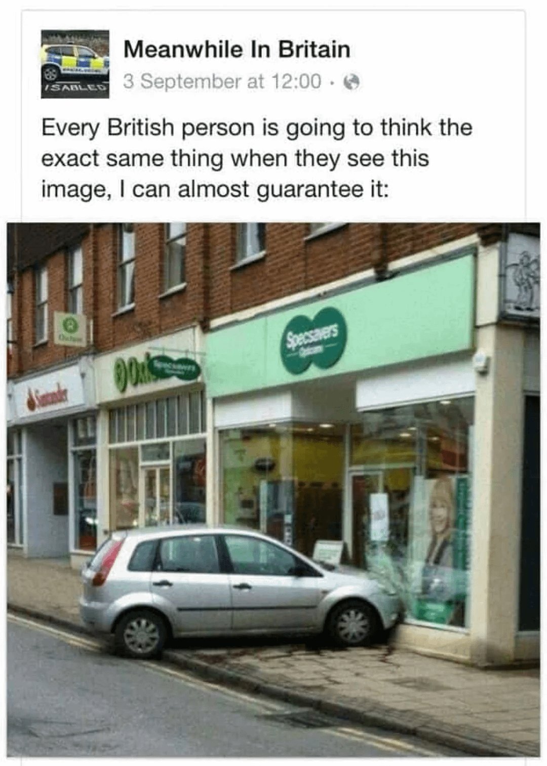 Just say it, you know you want to. by Elegant_Struggle4605 Tags:Great BritishGreat British MemesMemesUnited Kingdom 50 comments *Should have gone.. Should have gone to..* “Can’t park there, mate.” There’s surprisingly 2 things to say to this Well first thought was obviously ‘Should’ve gone to Specsavers’ but then the second thought was ‘Can’t park there mate’ Wow. Haven’t seen this for at least a month. cant go to specsavers shoulda parked elsewhere “There’s no holiday like a Jet2holiday”? Parking on the pavement obstructs wheelchair users and buggies. Should have gone to Vision Express Should’ve gone to- oh, they did. Thought George Michael crashed into snappy snaps. See it. Say it. Sorted. *BANG! AND THE SHOP IS GONE!* Autoglass repair, Autoglass replace. Should’ve gone to erm.., Vision express.. Crackin’ parking job that. Bet he didn’t see that coming… Must have really needed his lamps checking… Anything but these brainrot quotes all the bots latch onto. “Should have gone to Barnard castle”? 0800, double nine, ten sixty six? Better late than never I guess… That image of the sign is blurry on my phone and it gave me an idea! Joints that sell glasses should make their signs big but appear blurry so people go; “I need new glasses.” That’s why mums go to iceland Should’ve gone home You can’t park there 😂😭 George Michael and “You can’t park there mate” This isn’t just any car crash, this is an M and S car crash GO COMPAAAAAAAARE GO COMPAAAAAAAARE Bees are dying at an alarming rate https://preview.redd.it/4ztp6kalxcag1.jpeg?width=280&format=pjpg&auto=webp&s=405f0665164835a2ee060c361827d5fcff38fad7 But they did though You’ve made a spectacle of yourself there It’s like when George Michael drove into Snappy Snaps Sir, this isn’t a drive through. Should have let specsavers come to them? Should have gone to vision express Stand on the right. Hold on tight. He shouldn’t be parked there. He’s on double yellows. Can’t park there mate I say you buy one, you get one free Well he tried! 🎶 you can tell by the way I cross the road, that I’ve learnt all my green cross codes! 🎶 🦔 Should have gone to **Vision Express**… And people say we have no collective culture. These comments are the best. Auto glass repair……. He definitely should’ve gone to Specsavers. Every single time. Go Compare!!! Oi you can’t park there Can’t park there mate! this is not what i mean when i said “should have gone to specsavers” …but…but they did? Should have *walked* to Specsavers. . . To be fair it looks like that’s what he was trying to do Should’ve gone to… Boots opticians? Comments are closed.