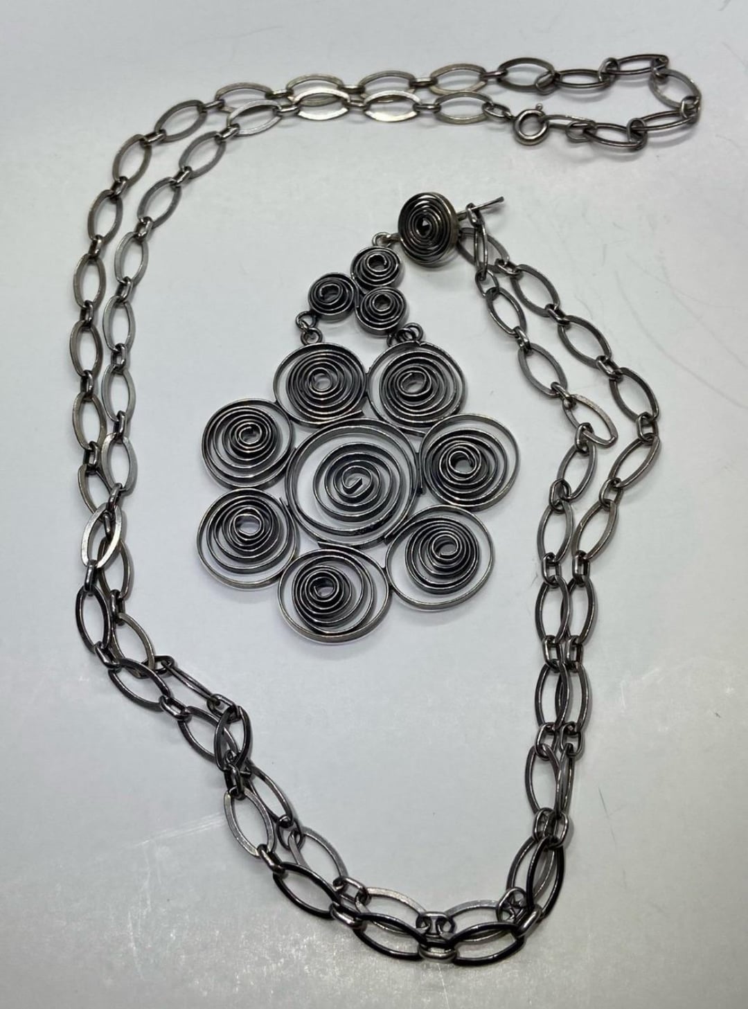 N. Westerback large pendant /necklace. If anyone has info about the designer or any info at all I’d appreciate it. I have not seen another piece like this one. by Psilotravlin Tags:finland 1 comment Nils Westerback, based on prolific contribution as a jeweler to various artist’s work such as Tapio Wirkkala. https://www.britishmuseum.org/collection/term/BIOG221570 Whether he is related to Westerback jewelry is another matter https://westerback.fi/blogs/uutiset/westerback-1897-yli-125-vuoden-perinne-huippulaadussa-ja-palvelussa Kinda looks from this set to Wirkkala. https://auctionet.com/fi/3168186-tapio-wirkkala-korvakorupari-silver-moon-nils-westerback-kultakeskus-oy-helsinki Comments are closed.