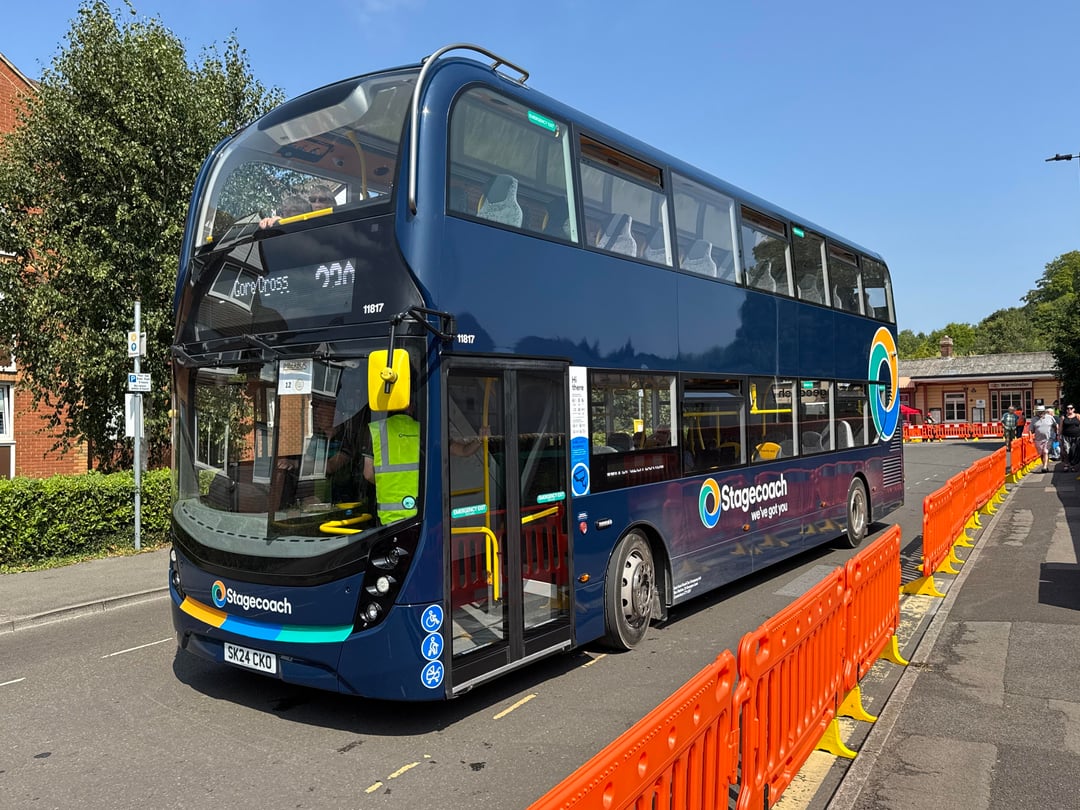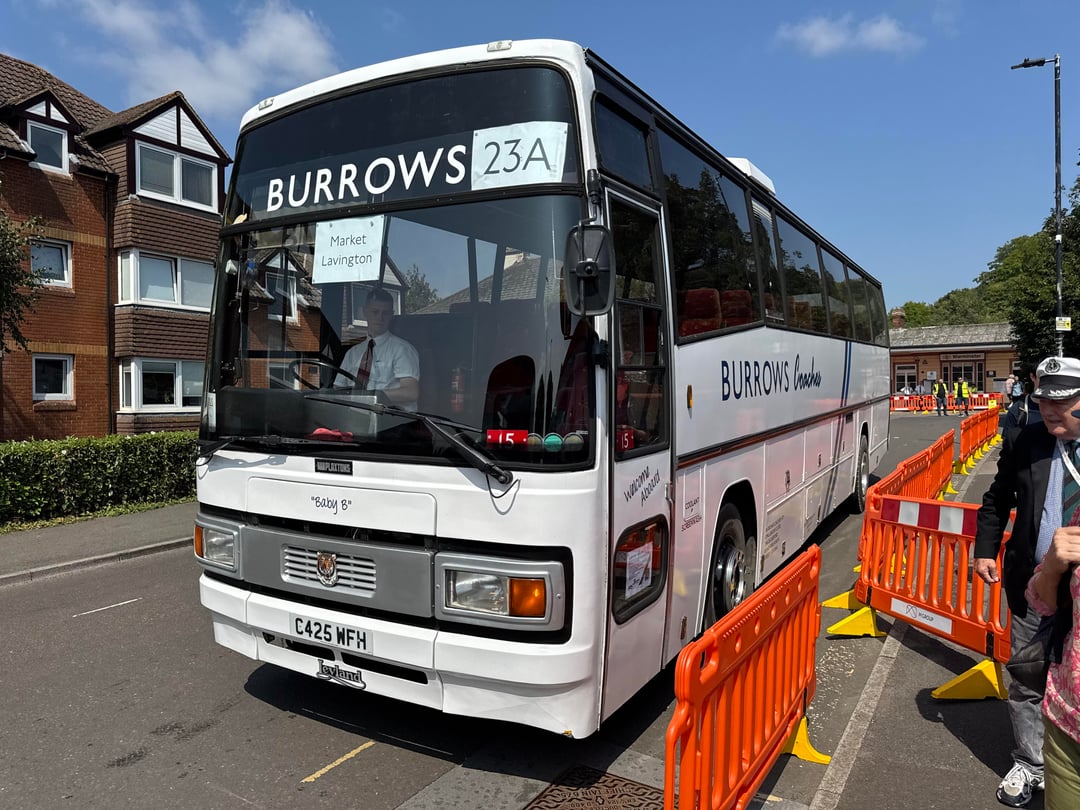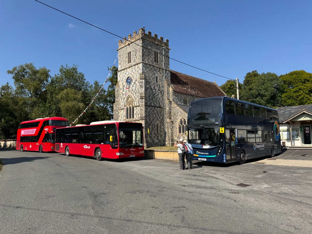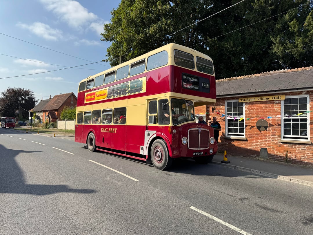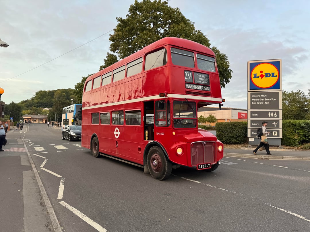 Up to 35 buses were in operation [1]. Most of these buses were heritage vehicles, such as the iconic Routemaster, but a few were modern wheelchair-accessible vehicles. A few non-London guest vehicles that had not visited Imber before were also present. Departures from Warminster station to Imber were approximately every 10-15 minutes from 09:30 onwards, with buses returning from Imber at regular intervals until 17:30 [1][2].