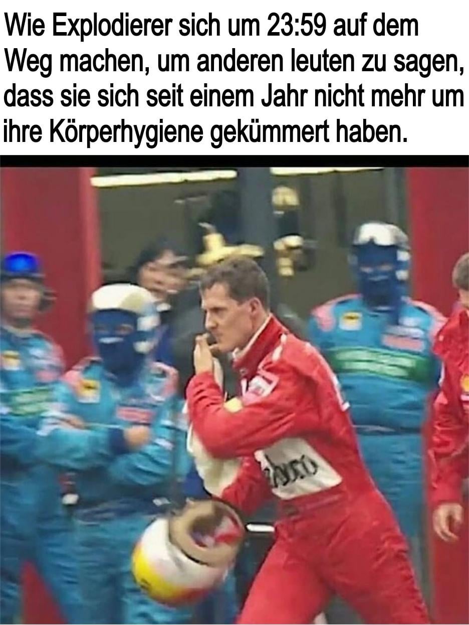 6. Ich weiß noch welchem Rennen das war. Es hat heftig geregnet und Schumi ist Damon Hill hinten reingefahren weil er ihn bei dem Wetter nicht gesehen hat, Schumis Ferrari hatte daraufhin nur noch 3 Räder und Hill scheidete ebenfalls aus. Schumi meinte das wäre Absicht von Hill gewesen und ist in die McClaren Box weil er sich mit Hill prügeln wollte. Strecke weiß ich nicht mehr aber könnte Spa gewesen sein.