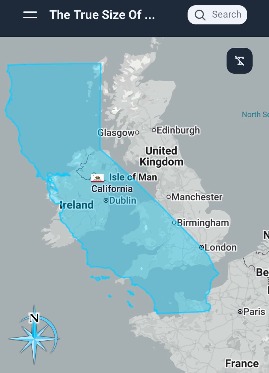This is fun. I now live in California and seeing it laid out over the island is crazy (even though I know it’s a huge state). Also lived in British Columbia and did the comparison – mind blowing.
