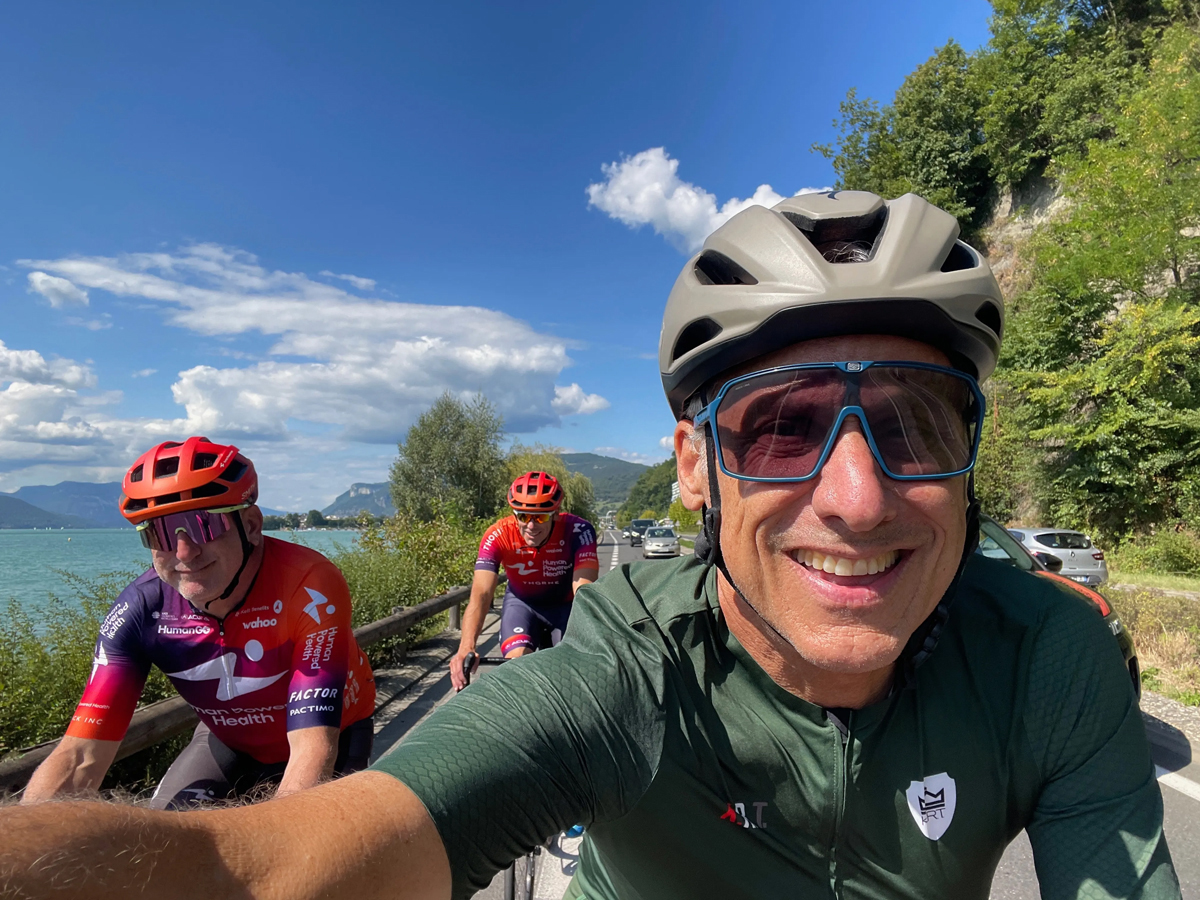 Riding around Lac du Bourget with Charles and Jarrett. Photo by Peter Abraham