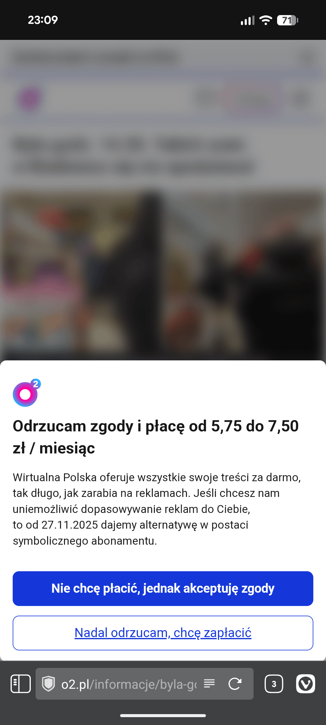 Cóż, Wirtualna Polska na to szcza. "Nie chcesz, żebyśny zbierali twoje dane? Płać albo wypierdalaj".
