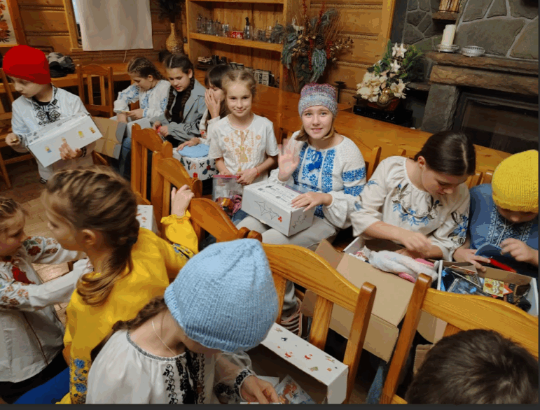 Common Man for Ukraine volunteers sing âJingle Bellsâ with children between 8 and 12 at the trauma counseling retreat for children whose fathers were killed in the war.