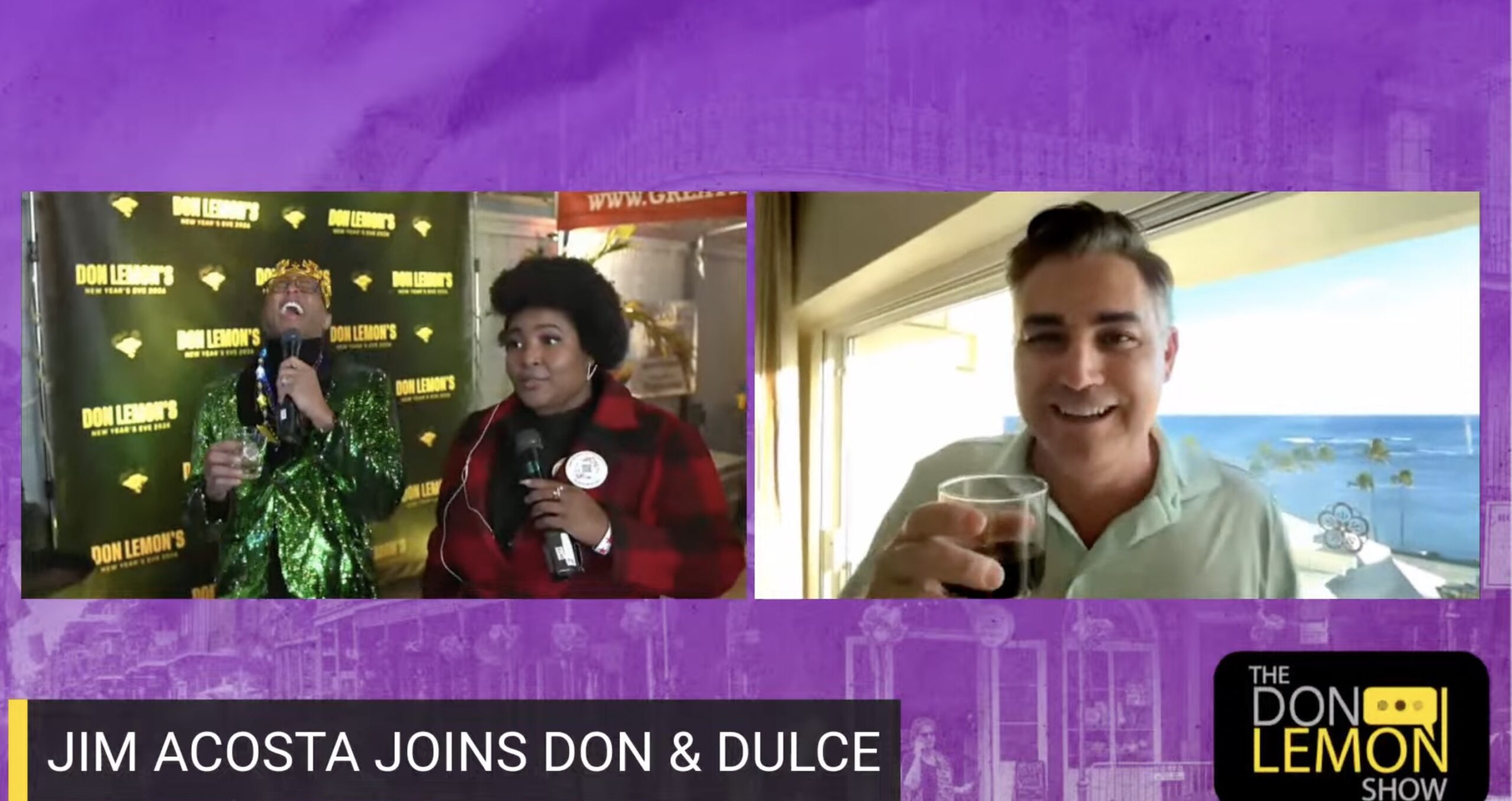 Acosta joined Lemon’s live NYE bash on YouTube remotely from Hawaii.