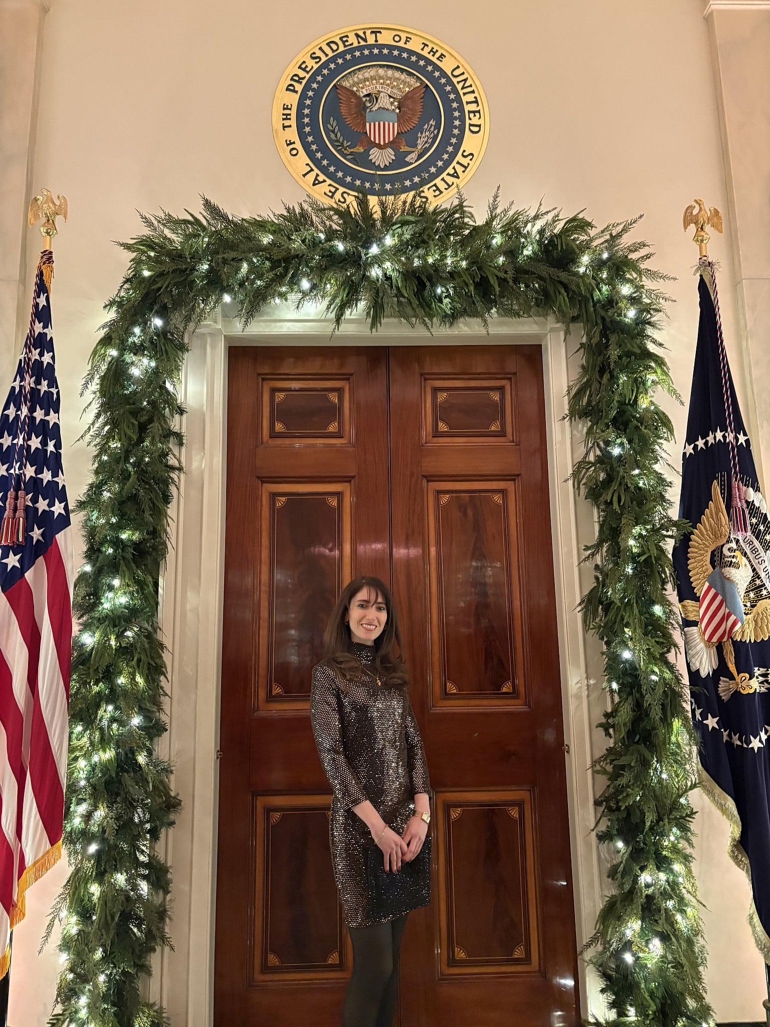 It is in this context that I recount my Hanukkah experience of 2025 as one that I will never forget. It began on the first day of Hanukkah at the Pentagon, invited by one of my best friends, where we celebrated our brave military service members as they lit the Menorah at the Department of War. After sufganiyot and latkes we stopped by the Pentagon Memorial Chapel to pay tribute to the 184 innocent people who died there on 9/11/01. And, as we added more candles to our Menorah each night, I couldn’t shake the excitement of what I was about to experience. A dear friend of mine had reached out to me, on my birthday of all days, to invite me as her guest to the White House for the 3rd night of Hanukkah. Being a Catholic herself, this would be her first Hanukkah and my first time at the White House, a dream of mine I had recently believed was impossible. Even now, 2 weeks later, I still cannot fully grasp that I was blessed to be there—within that hallowed house whose construction began in 1792, a silent witness to every consequential world leader. The White House, especially at Christmastime under our First Lady Melania Trump’s impeccable decorative taste, is adorned in a grandeur that dazzles the eye from every angle yet bears the weight of countless decisions made within its walls— decisions that have altered the course of history.