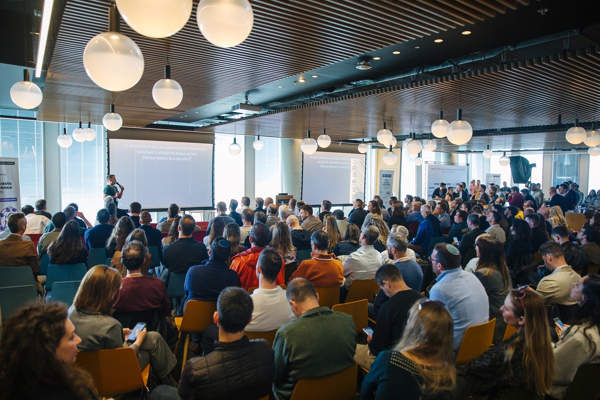 Investors, founders, and entrepreneurs at an annual VC trends conference in Tel Aviv on December 25, 2025. (Courtesy)