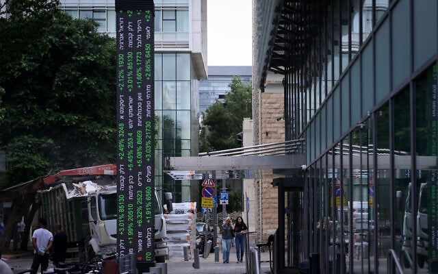 View of the Tel Aviv Stock Exchange. October 8, 2025. (Avshalom Sassoni/FLASH90)