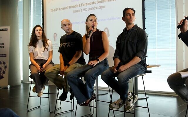 Right to left: Adam Fisher, partner at US-based investment firm Bessemer Venture Partners; Blackstone senior managing director Yifat Oron; and Gigi Levy-Weiss, general partner at NFX, participate in a conference panel in Tel Aviv on Dec. 25, 2025. (Courtesy)