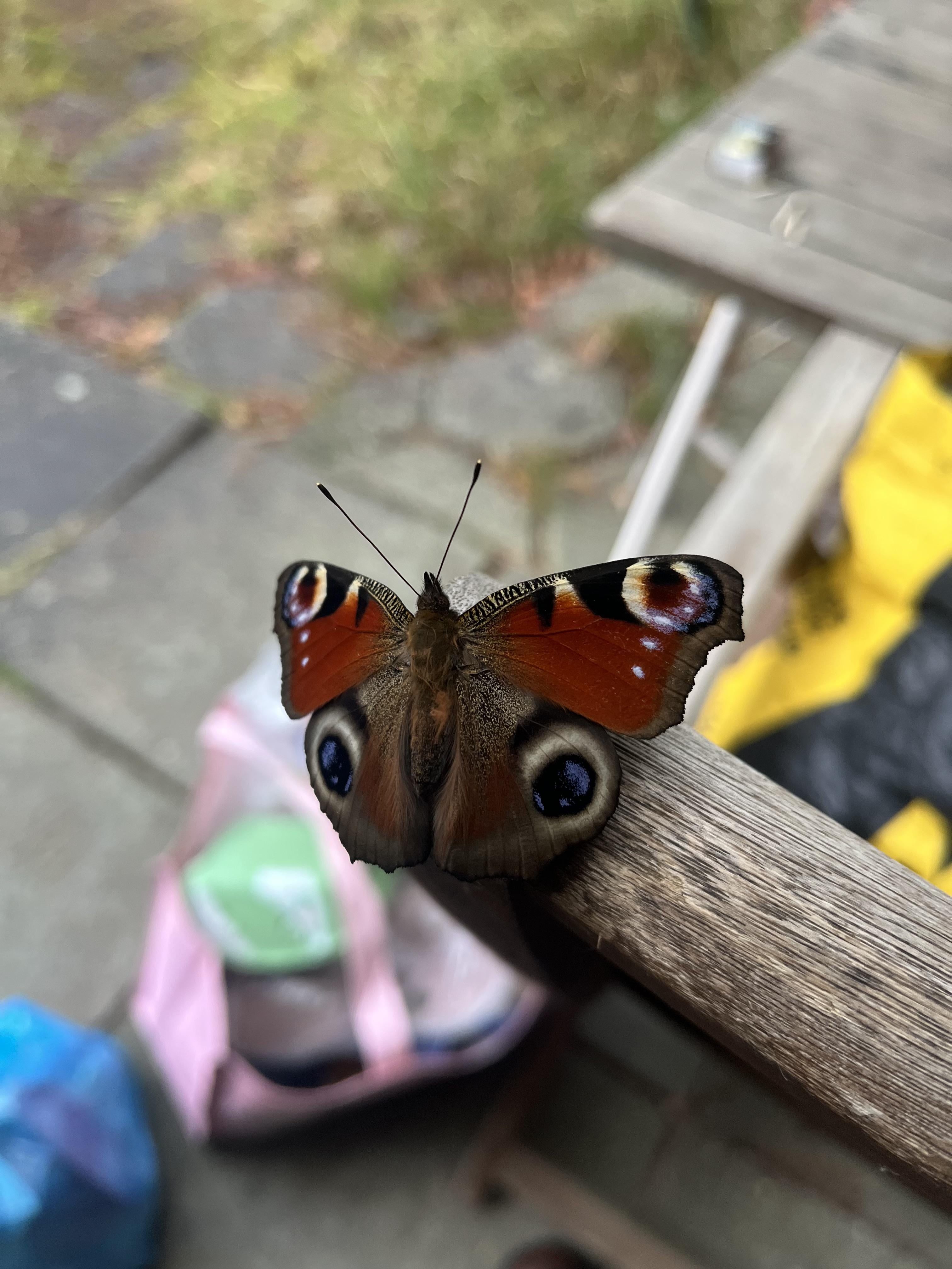 Det er en dagpåfugleøje, og jo – den er tidligt ude. I kan prøve at placere den et køligt og mørkt sted, fx i et brændeskur.