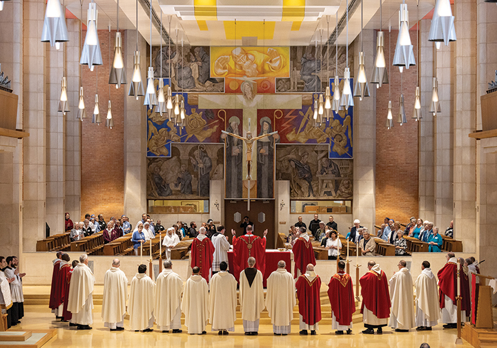 Archbishop McKnight celebrates Mass at St. Benedict’s Abbey for members of more than 20 religious communities working in the archdiocese. LEAVEN PHOTO BY JD BENNING
