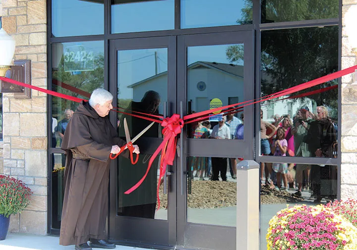 • St. Boniface Parish in Scipio held a soft opening of its new parish hall on Sept. 28. Father Gerald Williams, O.Carm., retired pastor, cut the ceremonial ribbon, and Archbishop McKnight blessed the space.